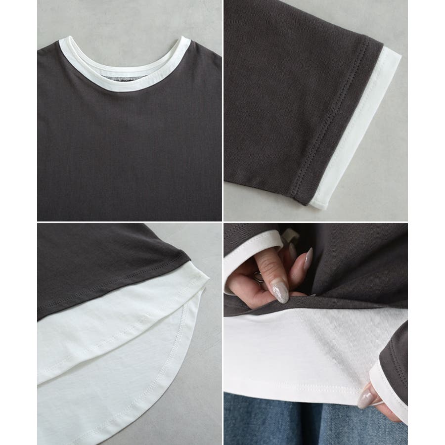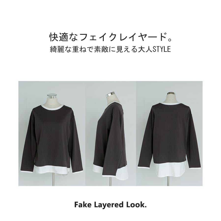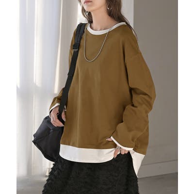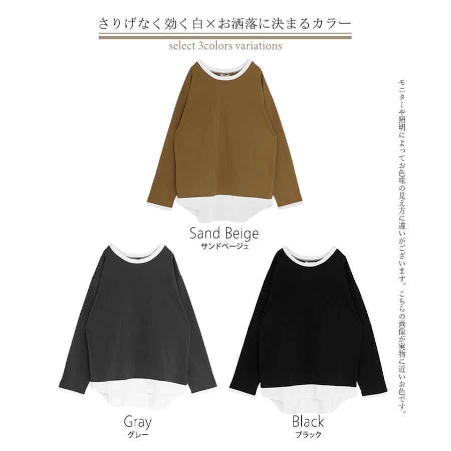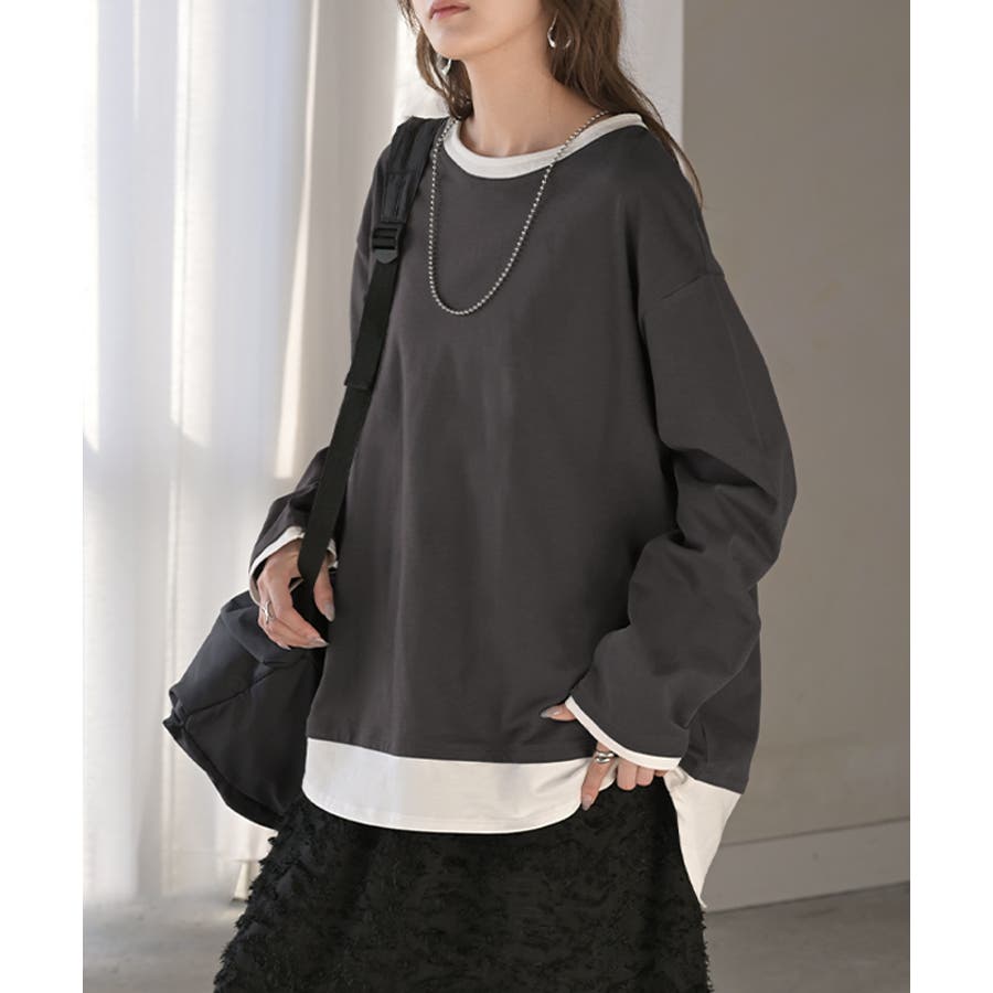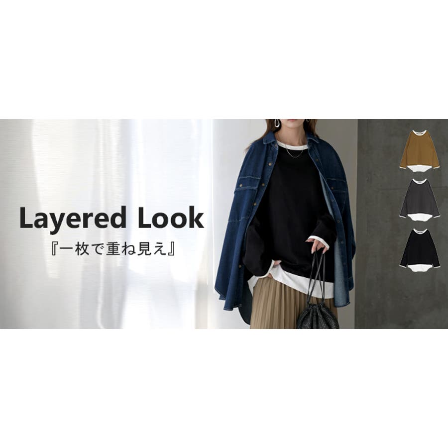 配色のフェイクレイヤードデザインが特徴的な長袖カットソーです。
