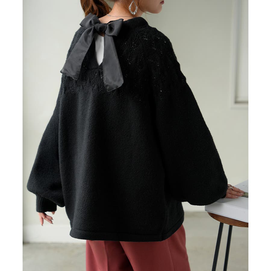 バックスタイルが映える大人可愛いリボンデザインニットです。