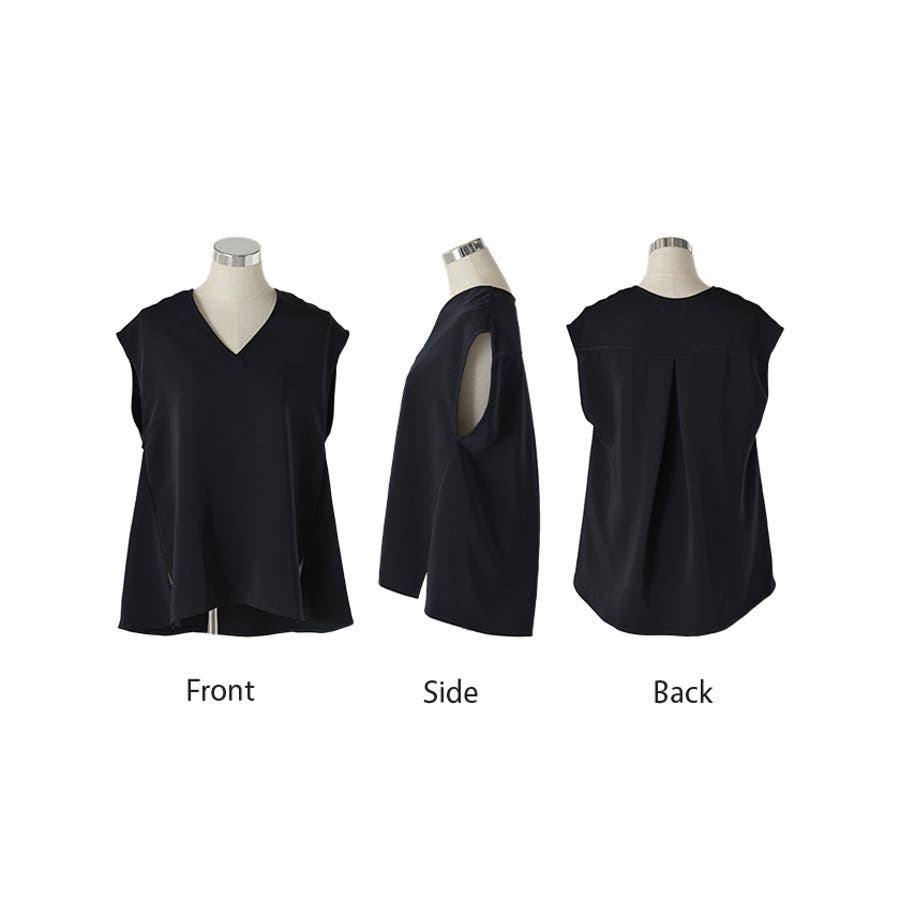 顔周りをシャープに演出するVネックデザインでこなれ感をプラス◎。