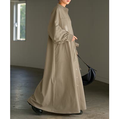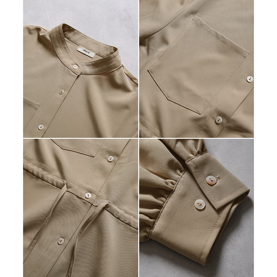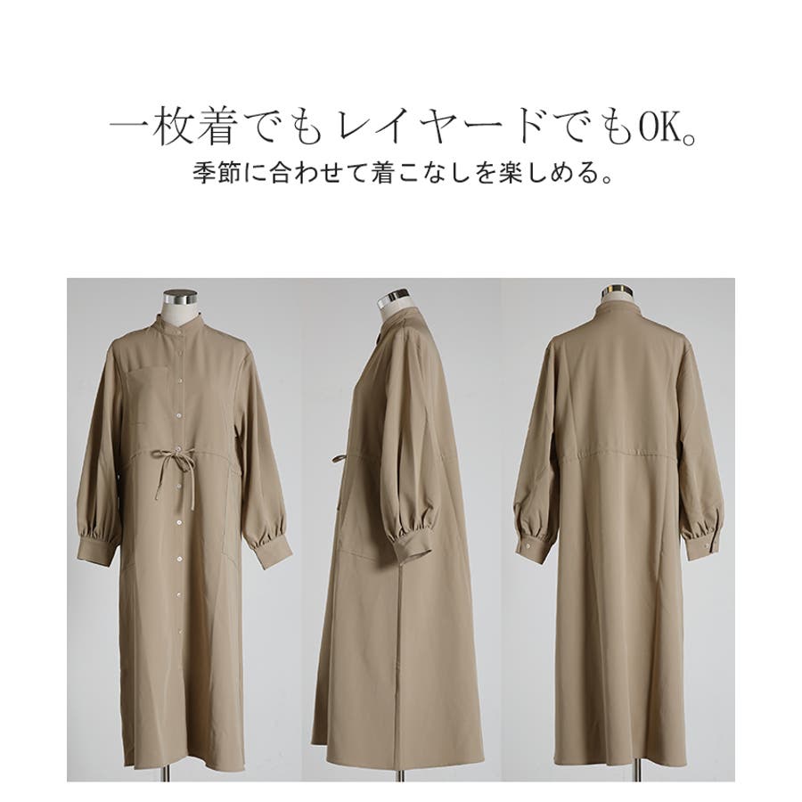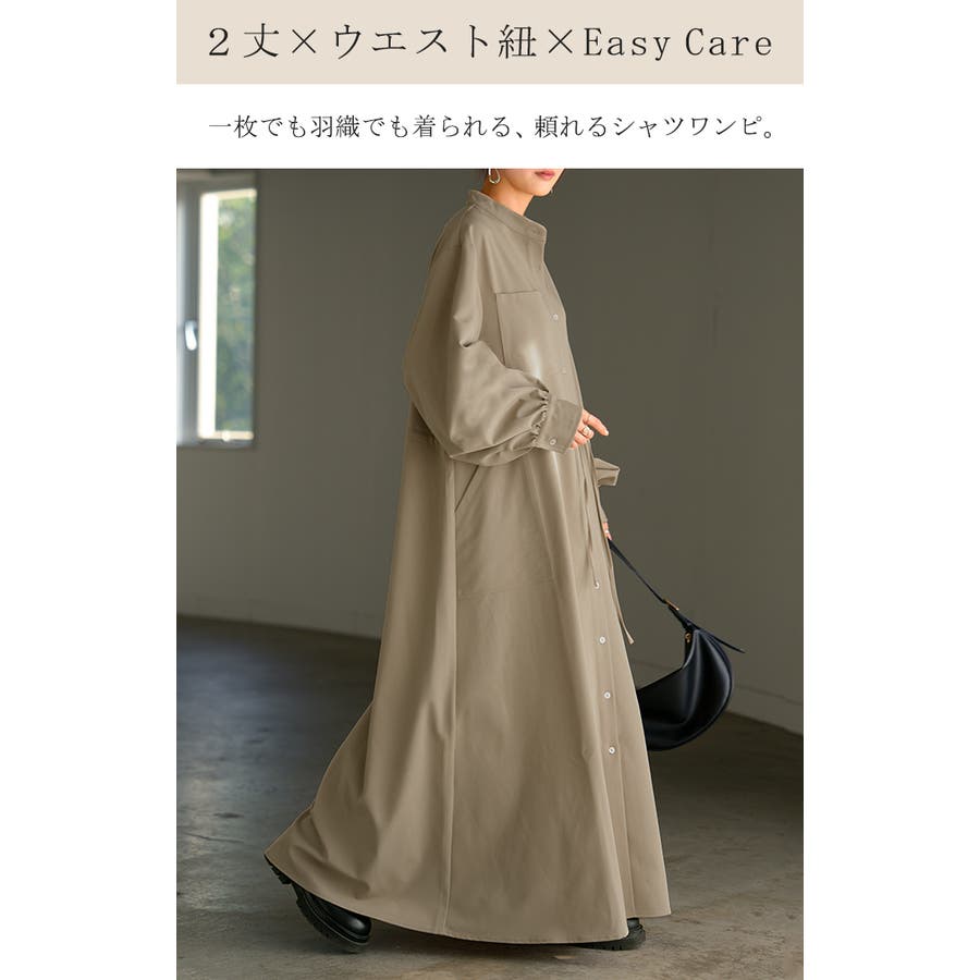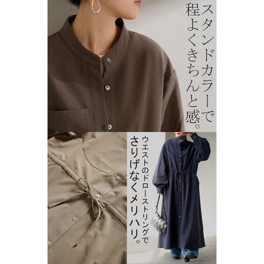 バンドカラーがマニッシュな印象を与えるシャツワンピースです。