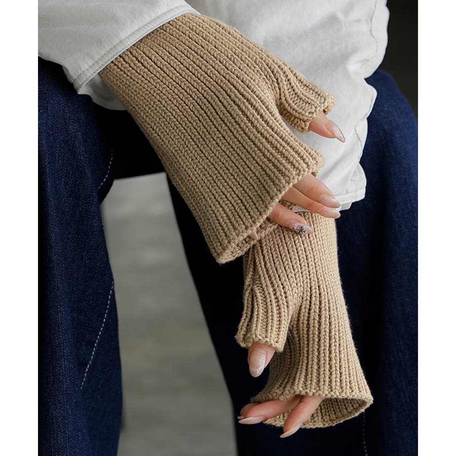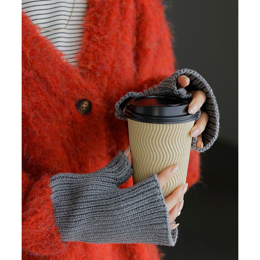 伸縮性のあるリブニット素材のアームウォーマーです。