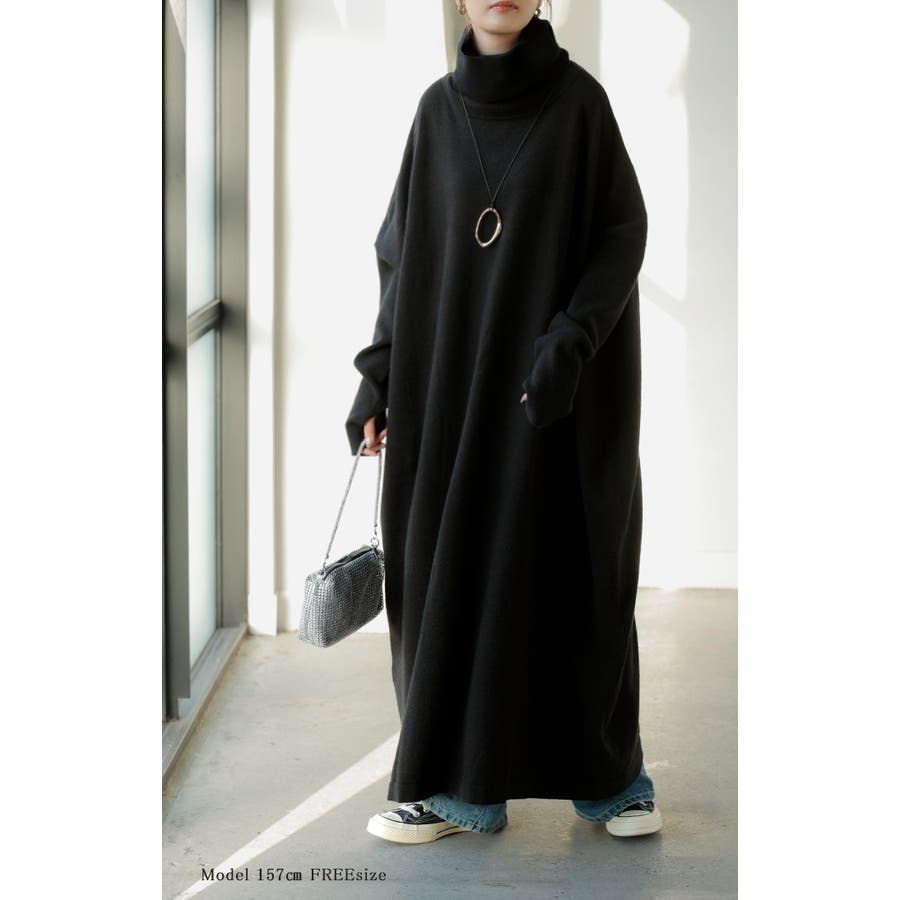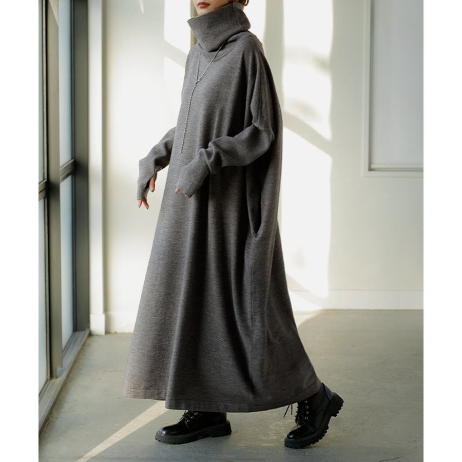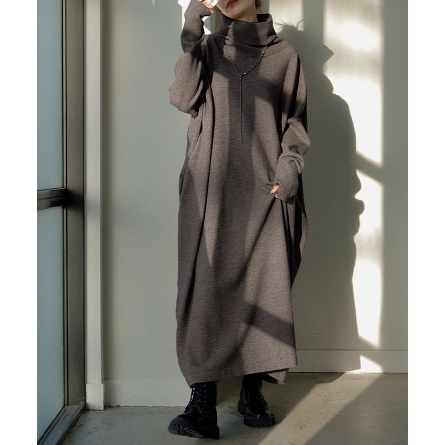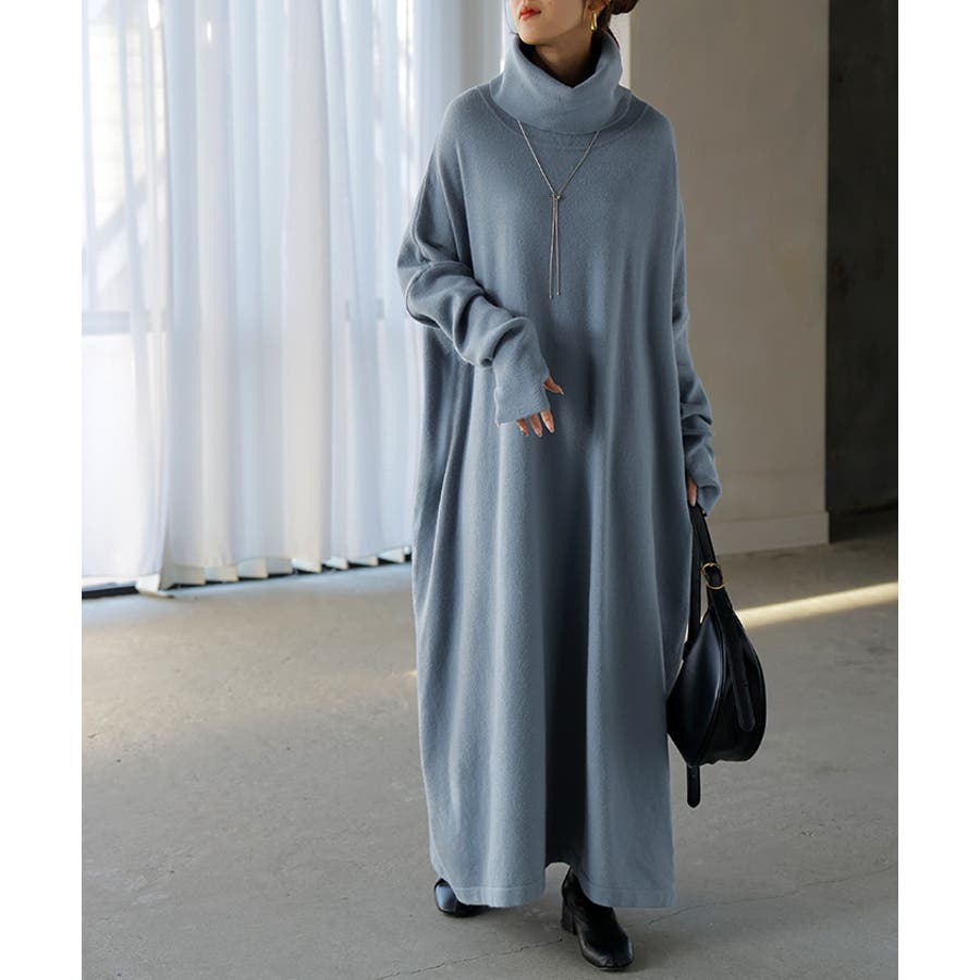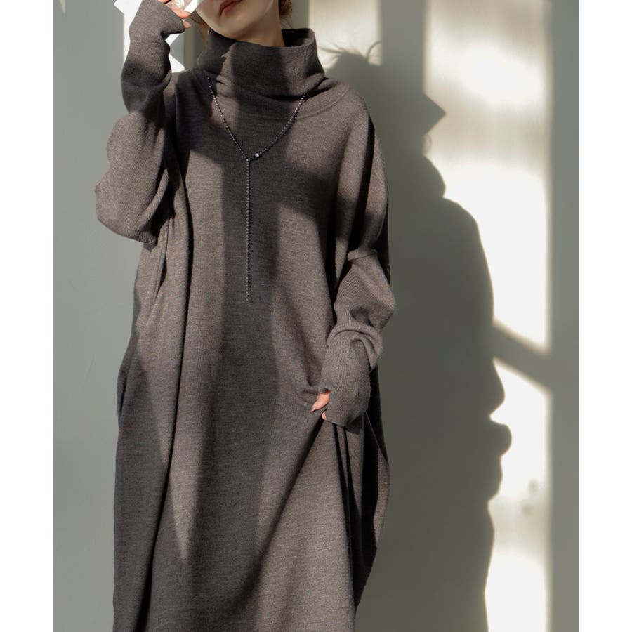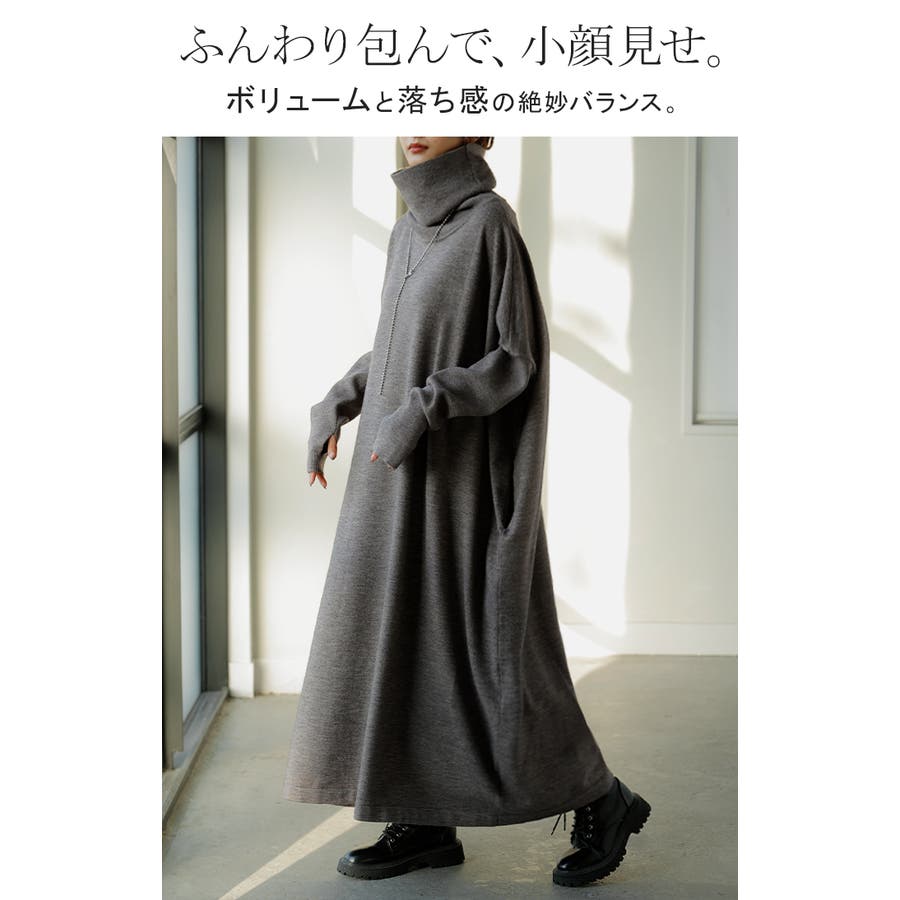 ゆったりシルエットとオフタートルが可愛らしいニットワンピースです。