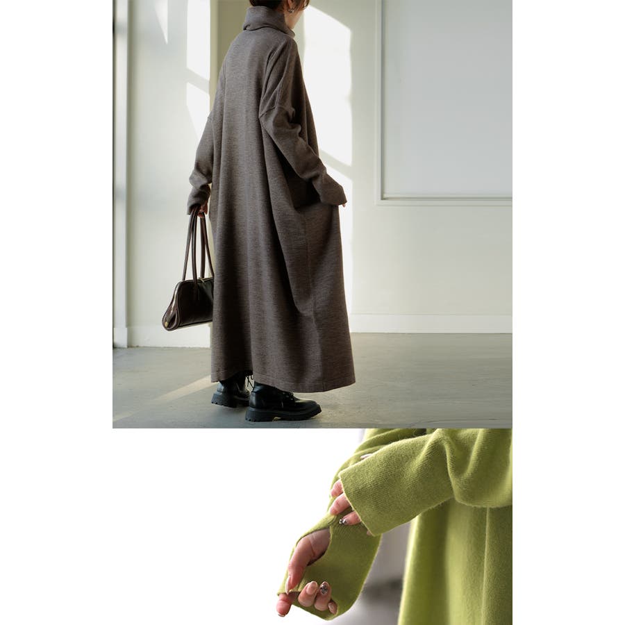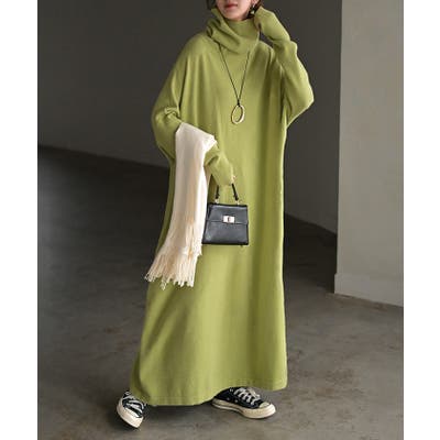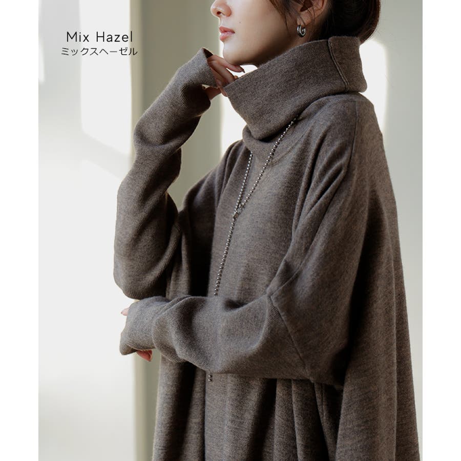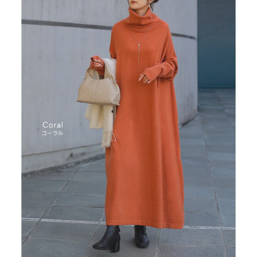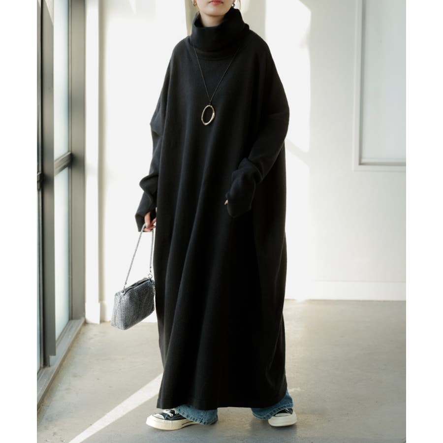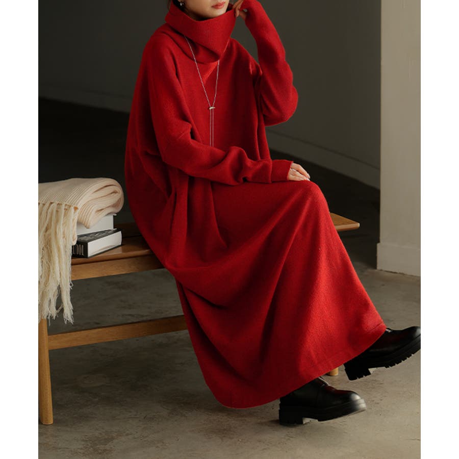 ゆったりシルエットとオフタートルが可愛らしいニットワンピースです。