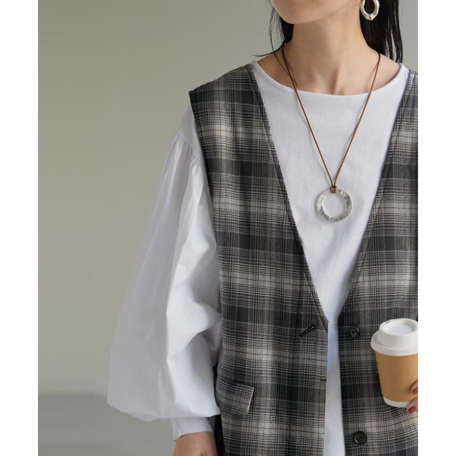 Vネックがレイヤードのバランスを整えスリットは動きやすさをプラス。