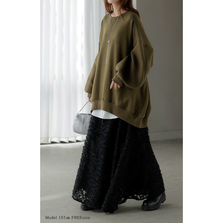 旬なシルエットがスタイリングを演出するスウェットトップスです。