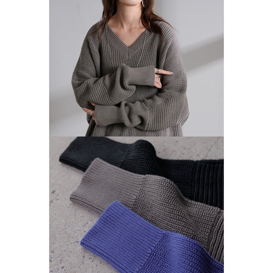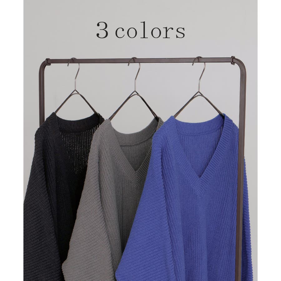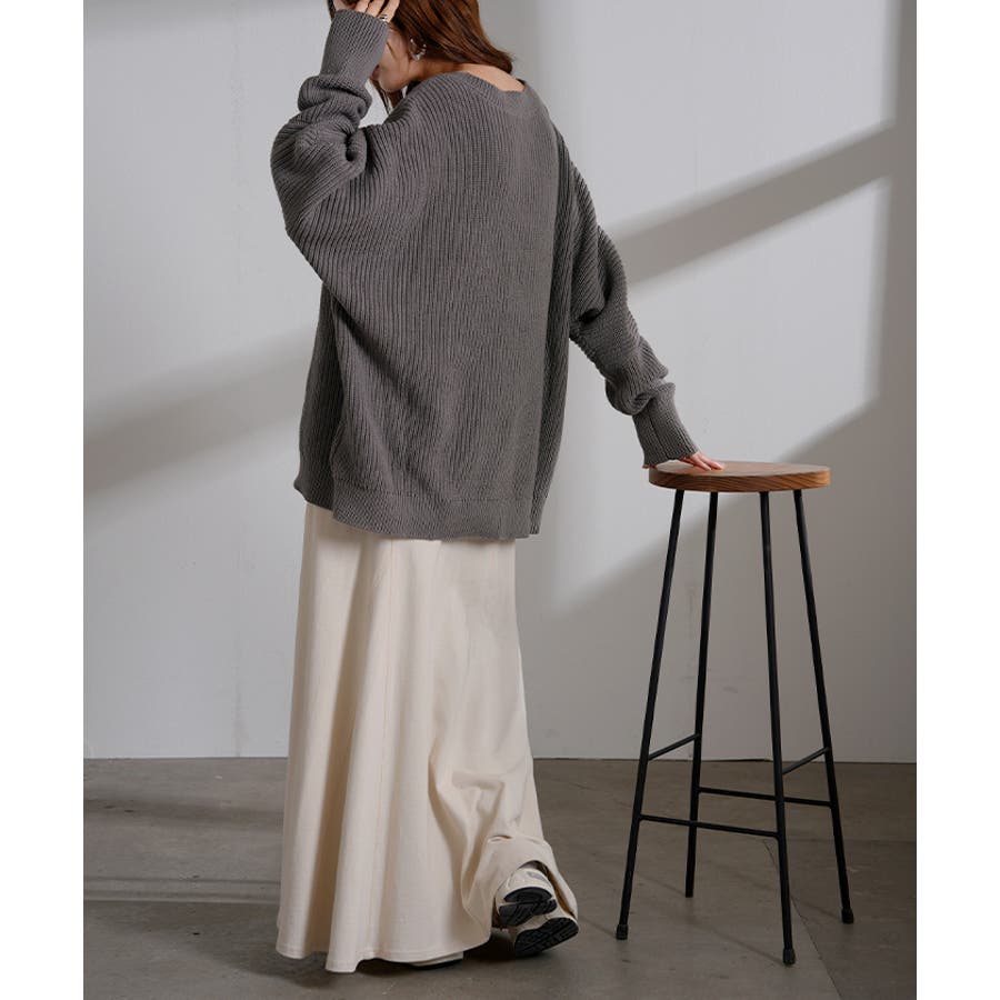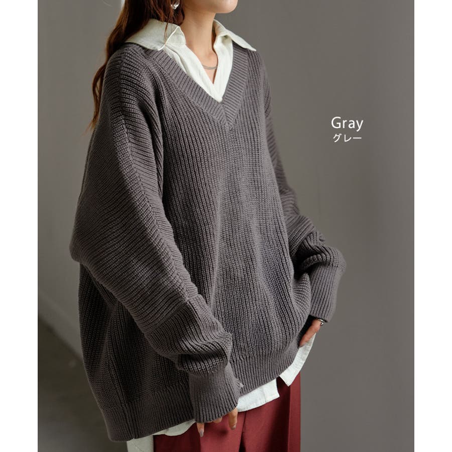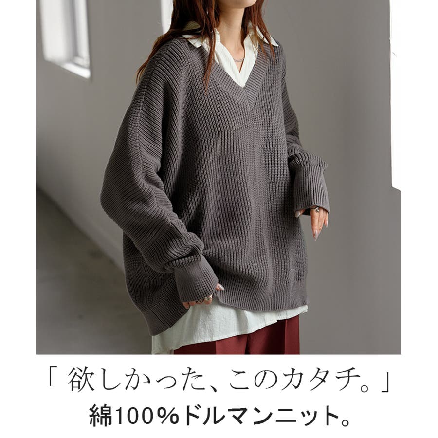 デコルテをキレイに魅せるVネックと、ゆるっとしたシルエットがポイント。