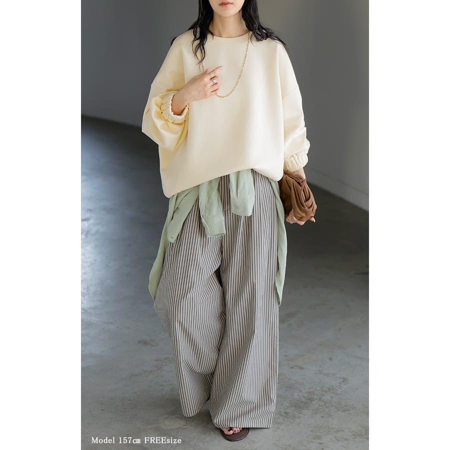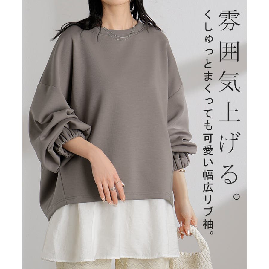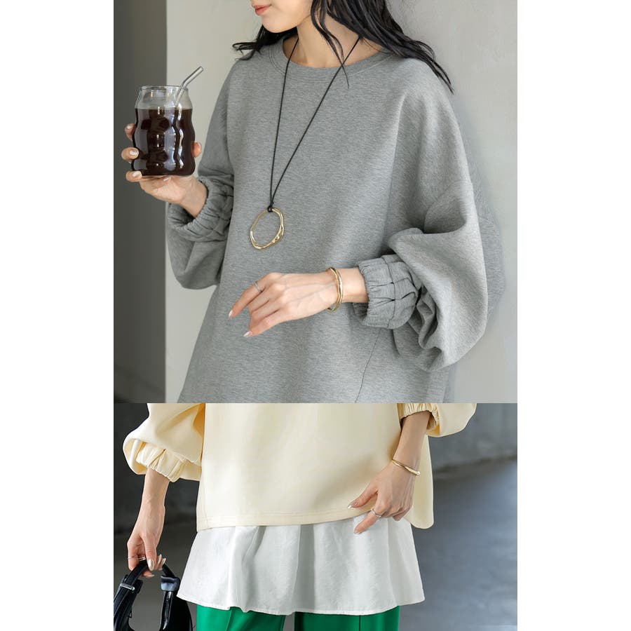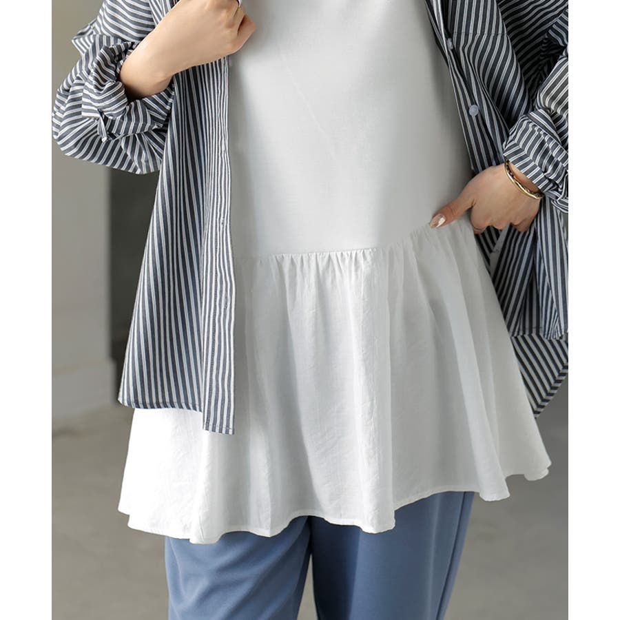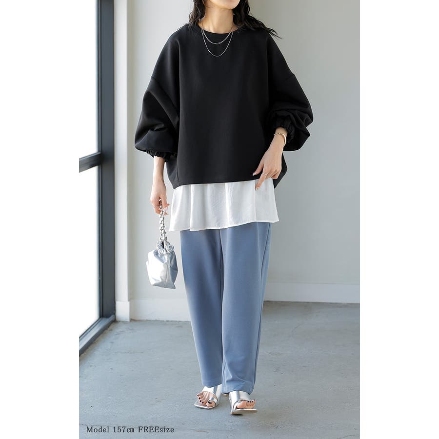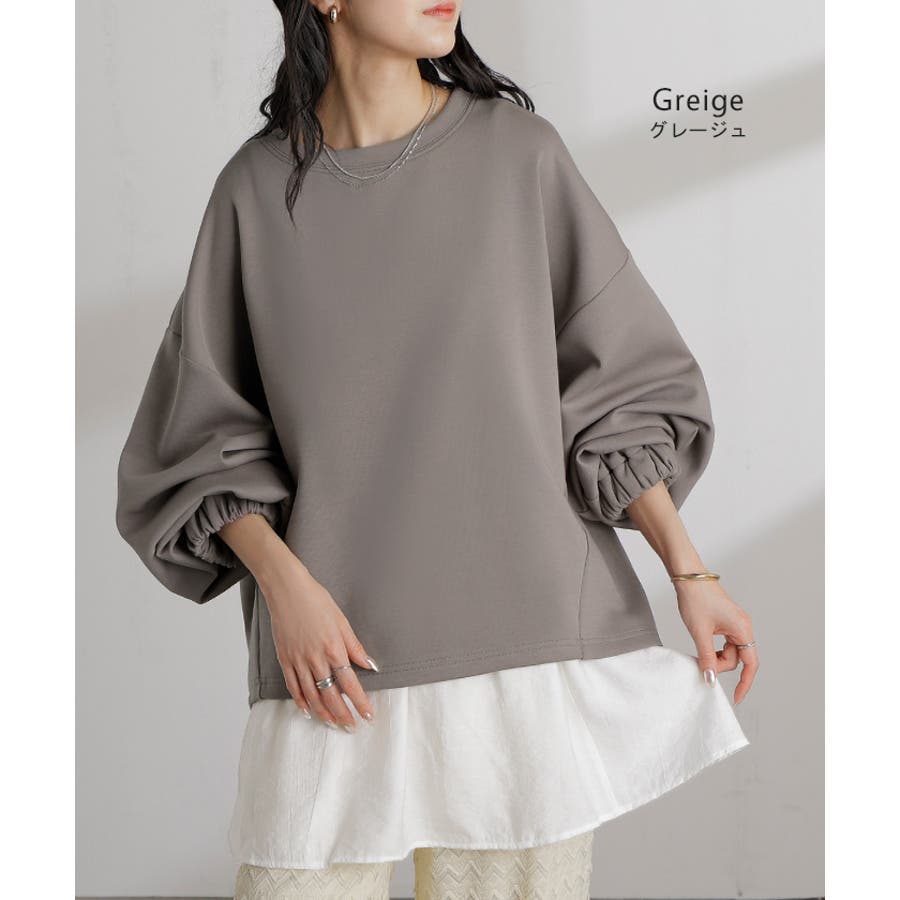 カットソーの裾からシャツ地のペプラムがのぞく華やか&洗練されたデザイン。