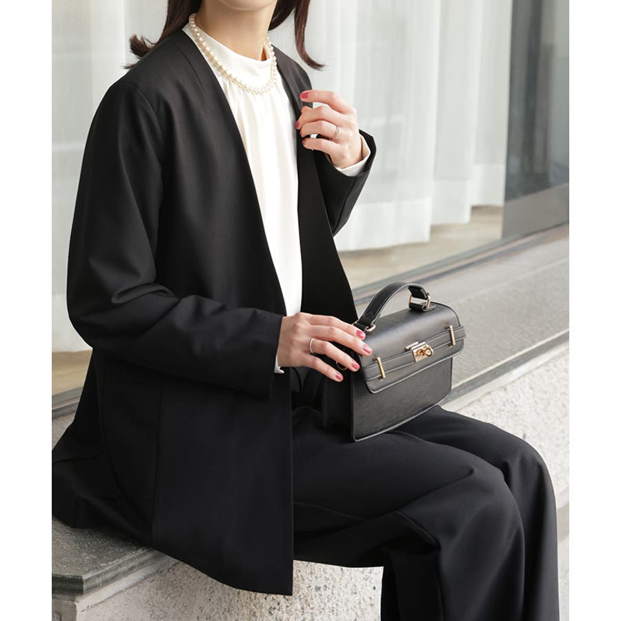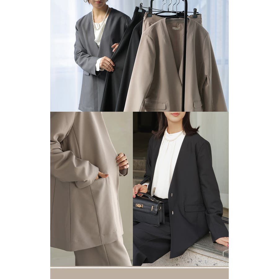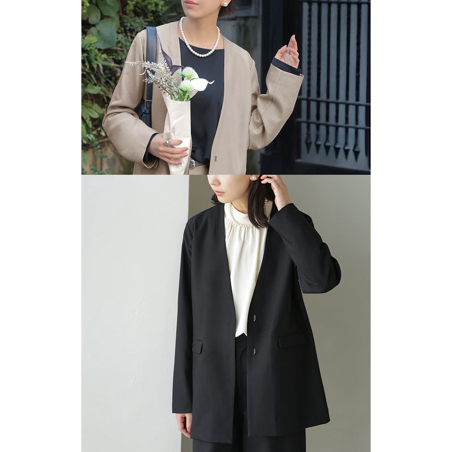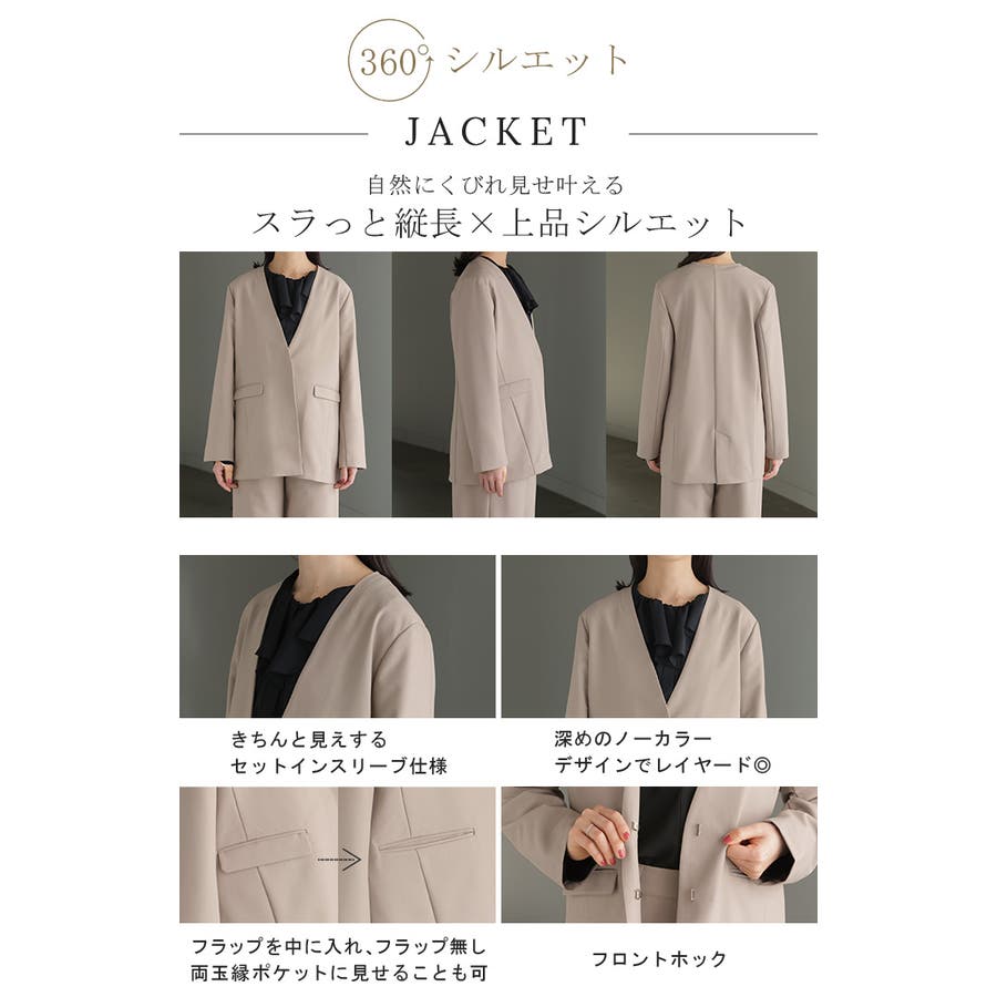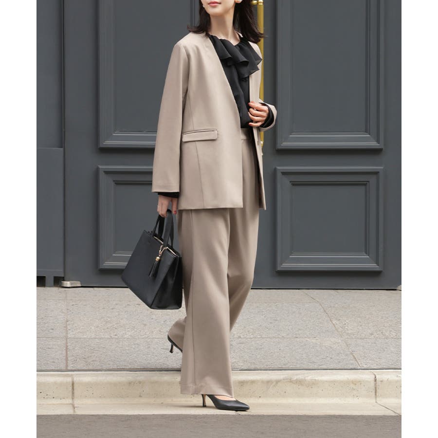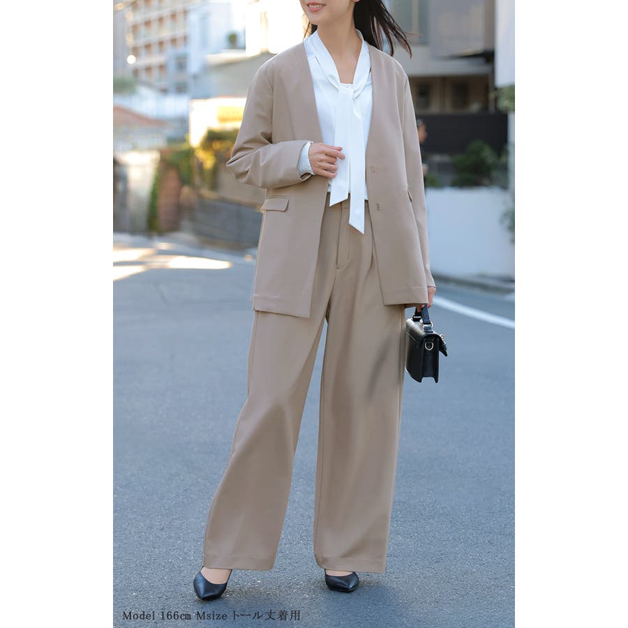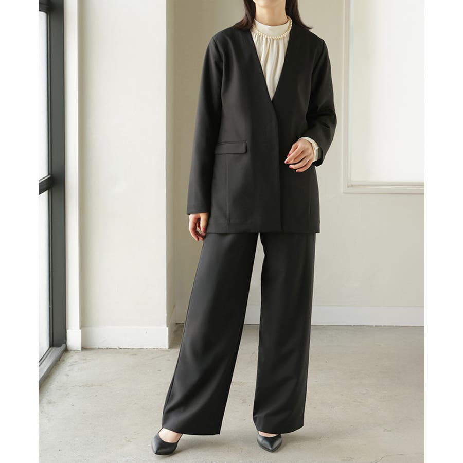 カラーレスジャケットは程よい抜け感で、パンツはすっきりとしたシルエットに仕上げました。
