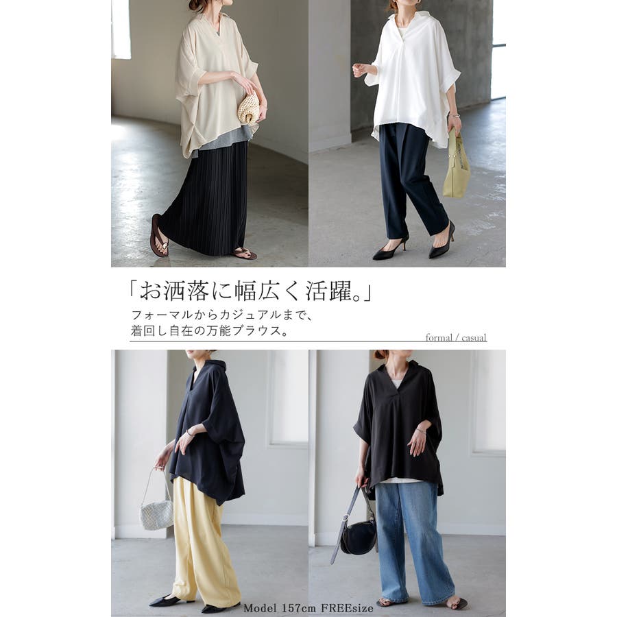 スキッパーブラウス スキッパーシャツ スキッパー スキッパー襟 襟付きブラウス 襟付きシャツ Vネック 深Vネック 抜き襟 抜襟 バルーンシルエット バルーン バルーン裾 裾バルーン アイロンいらず アイロン不要 ホワイト 白 水色 ベージュ ネイビー 紺色 黒色 保護者会 参観日 学校行事 授業参観 懇談会 オフィス オフィスカジュアル 通勤 仕事 事務 事務服 接客 営業 面接 レディースファッション 旬 トレンド プラスサイズ ビッグシルエット ビッグ ビック big ビックサイズ ビッグサイズ オーバーサイズ 大きい 大きめ フリーサイズ フリー S M L LL 2L XL 3L XXL LLL カジュアル ベーシック 着回し シンプル 大人 大人カジュアル オトナ 女性 綺麗 きれい キレイめ きれいめ 高見え 上質 上品 20代 30代 40代 50代 60代 おしゃれ お洒落 オシャレ 可愛い かわいい カワイイ カッコいい カッコイイ 春 夏 秋 冬 春夏 秋冬 HUG.U HUGU ハグユー はぐゆー