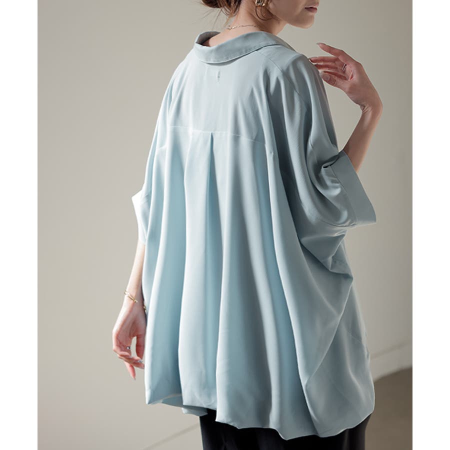 ゆったりとしたバルーンシルエットの5分袖シャツです。