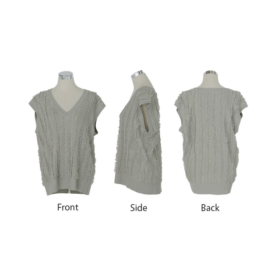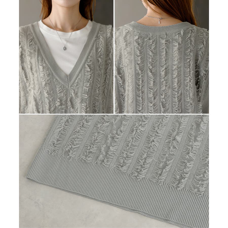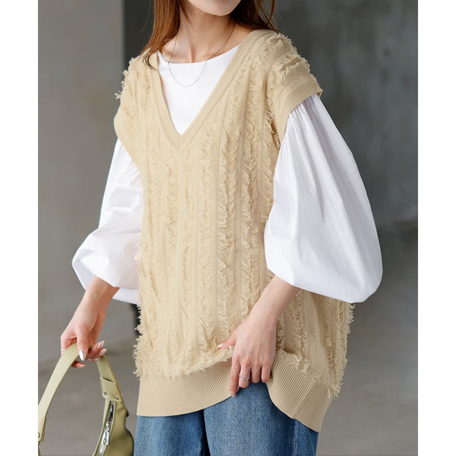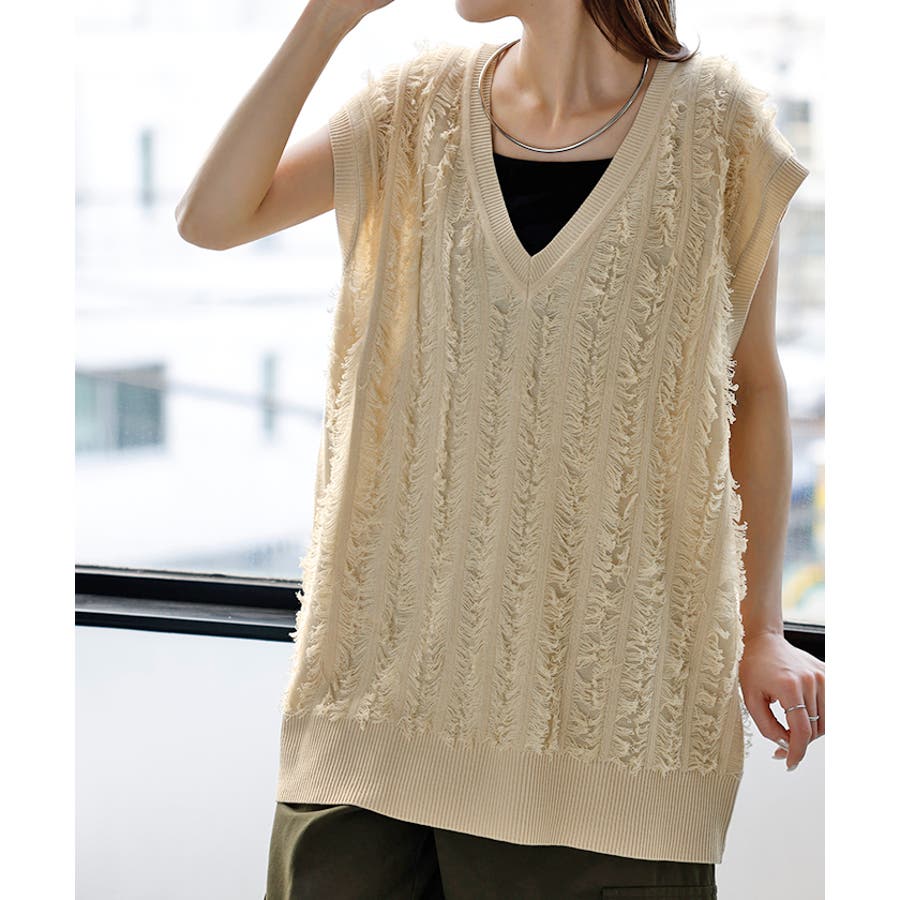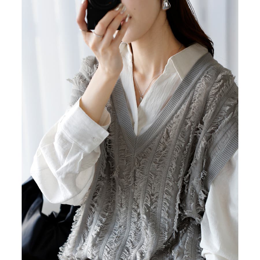 フリンジデザインが目を惹くVネック二ットベストです。