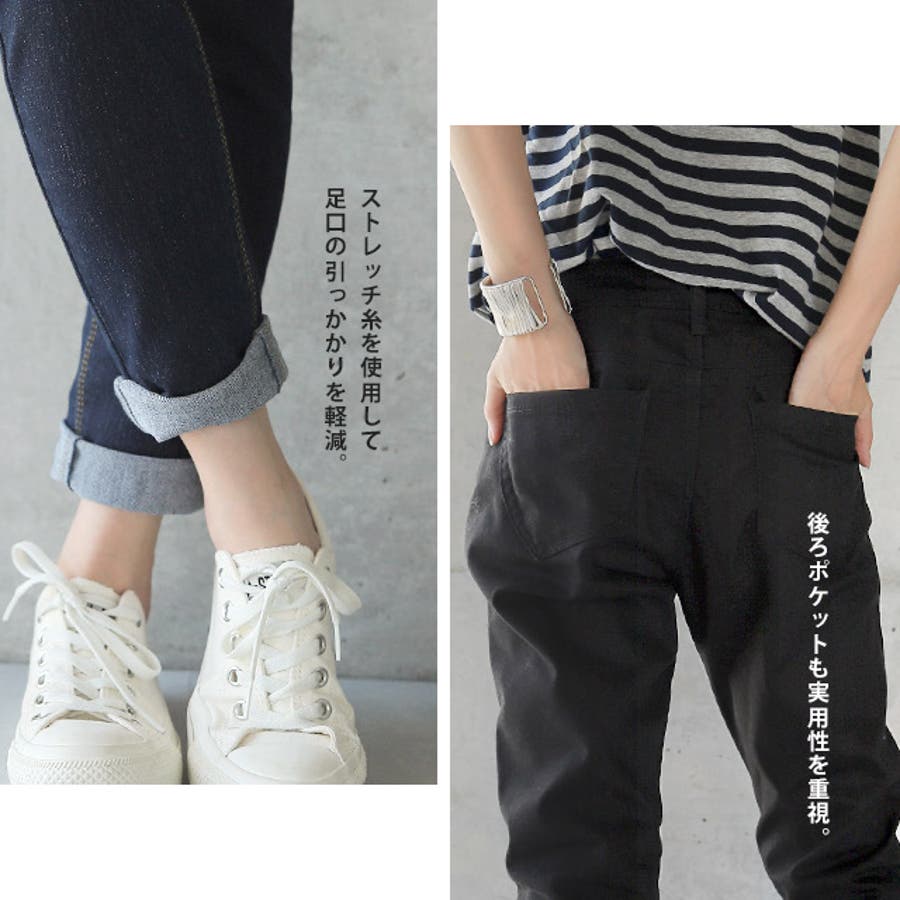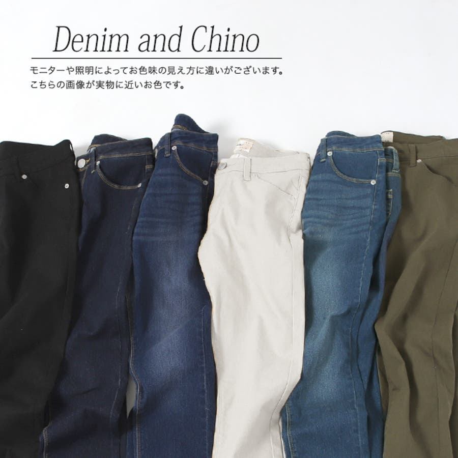 | 素材 | チノ:綿61%・ポリエステル37%・ポリウレタン2% デニム:綿70%・ポリエステル28%・ポリウレタン2% |