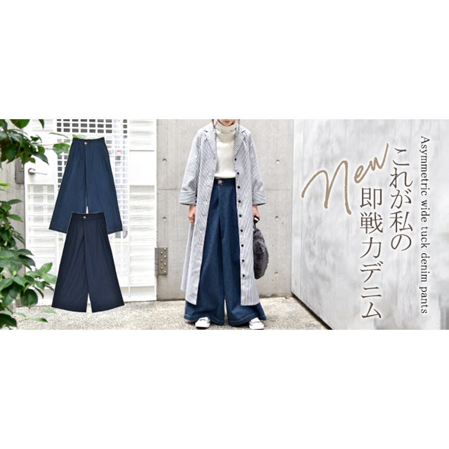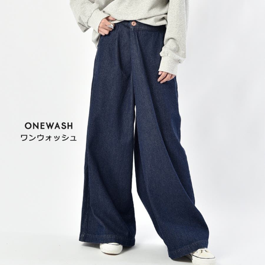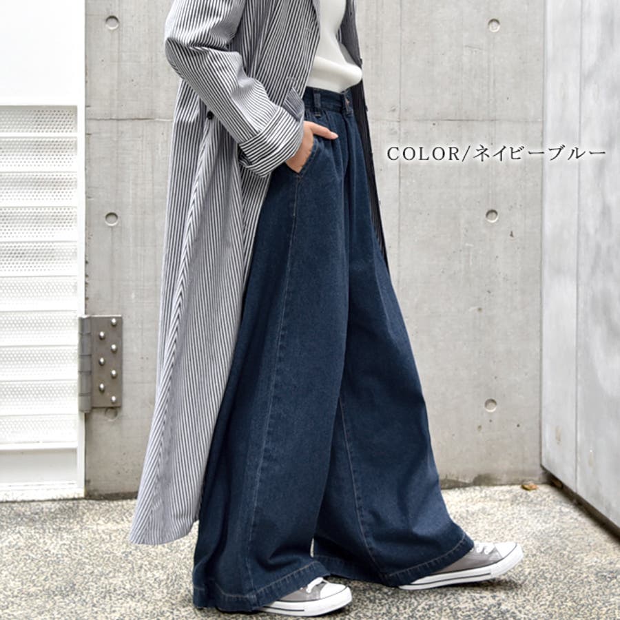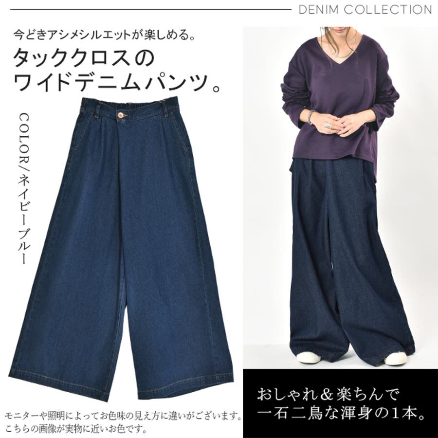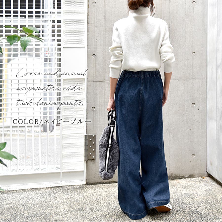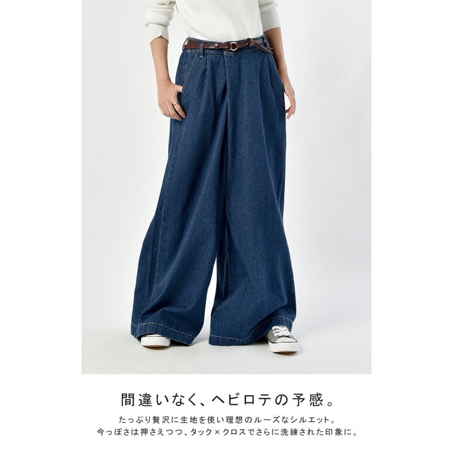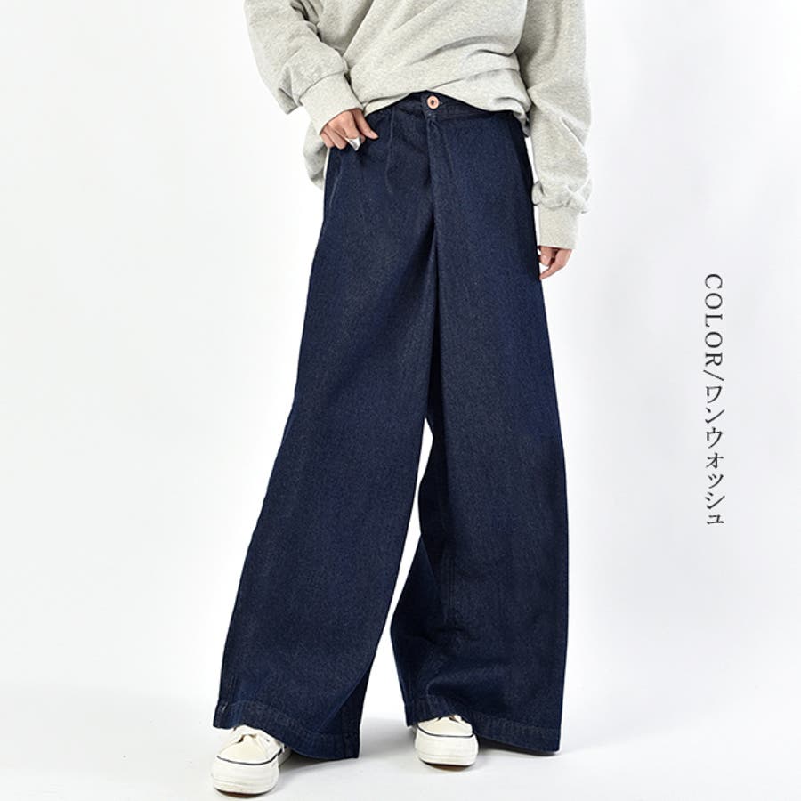 デニム ワイドパンツ レディース ワイド ワイドデニム パンツ ボトムス タッ