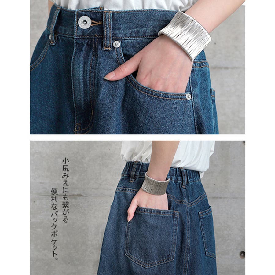 ハリのあるデニムでラインを拾わず体型カバー効果も抜群。