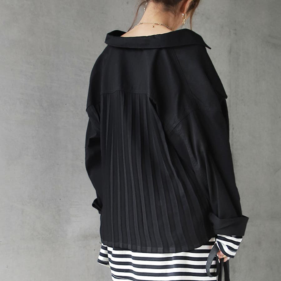 バックデザインがプリーツになった異素材使いのジャケット。