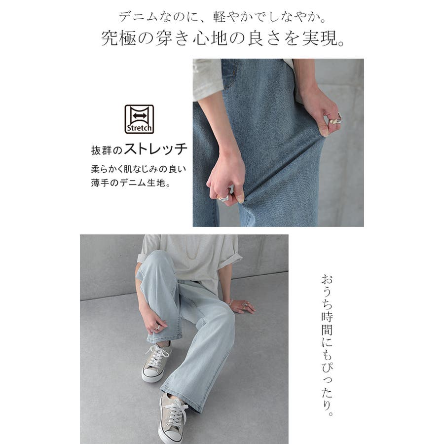 デニム レディース デニムパンツ パンツ ストレッチ ゴム ワイドパンツ 大き