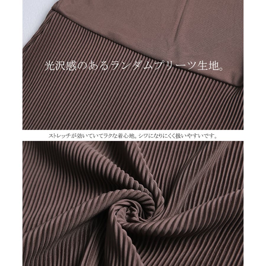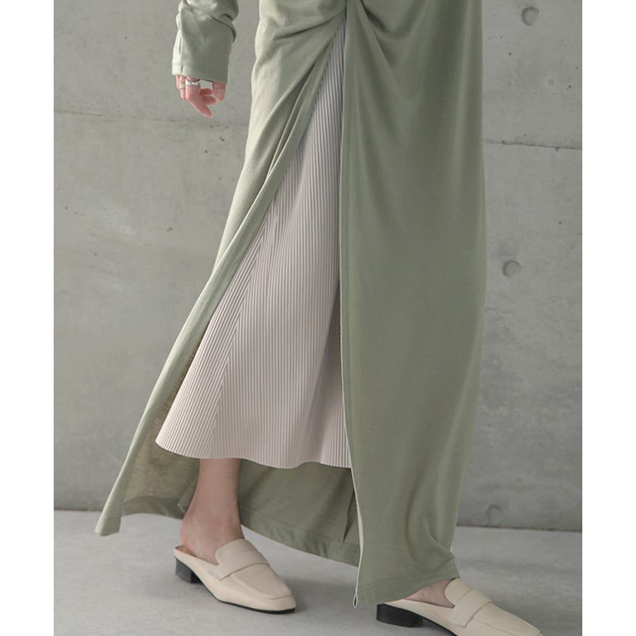 スリットから丈の差があるインナーキャミのプリーツがのぞき大人っぽい印象に。