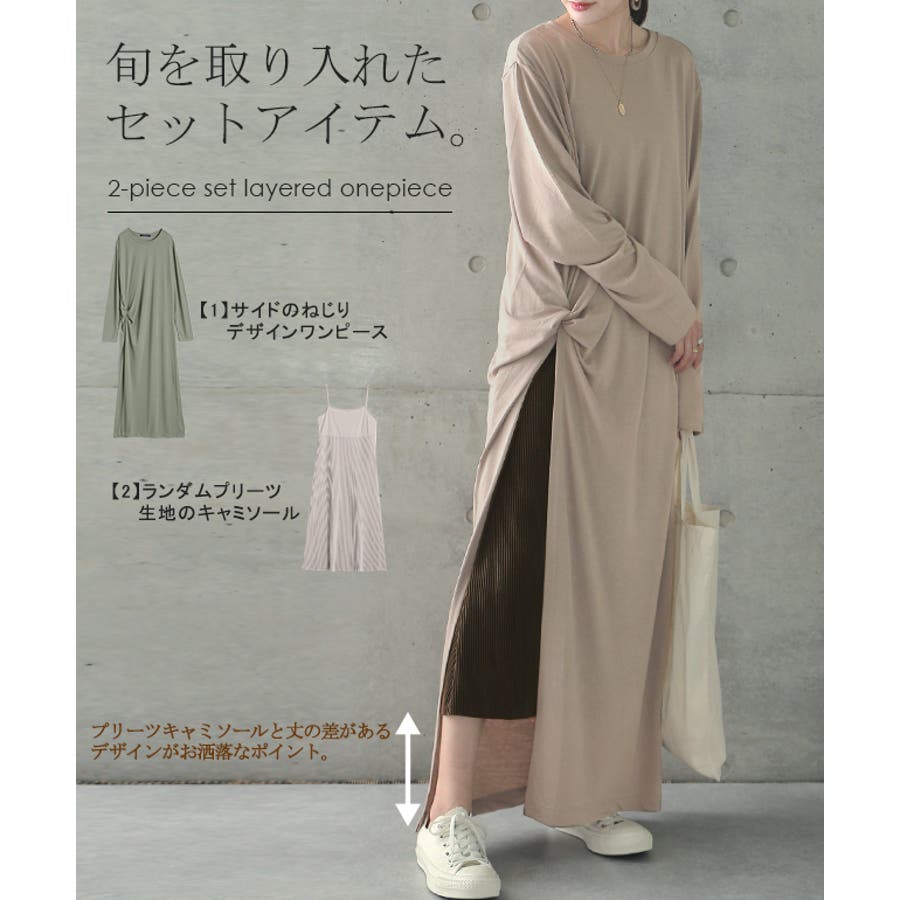 なめらかな生地で落ち感が綺麗な2点セットワンピース。