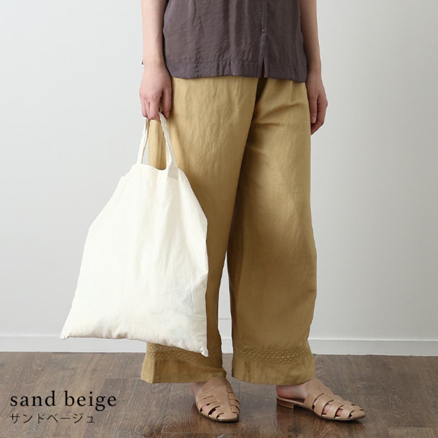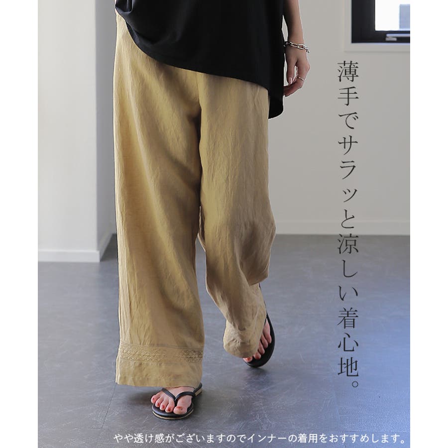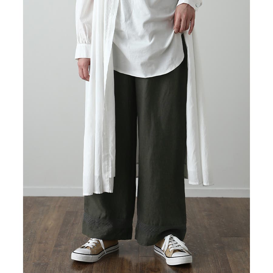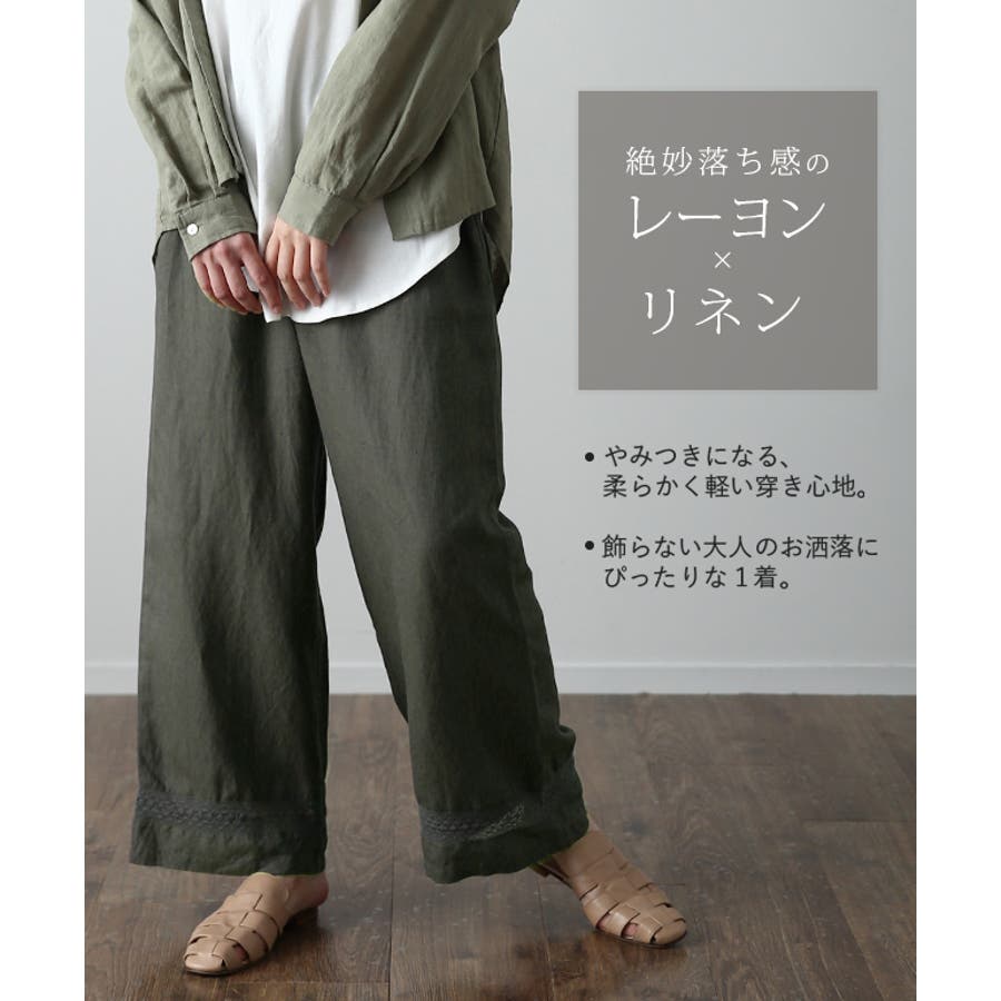 ワイドパンツ レディース パンツ リネン レーヨン 刺繍 レース ゆったり ナ