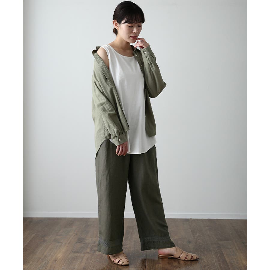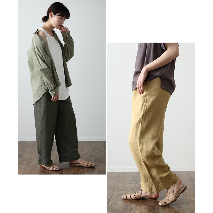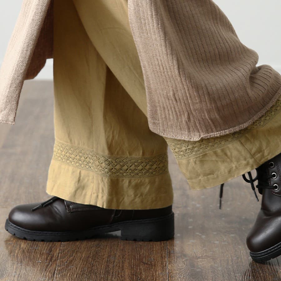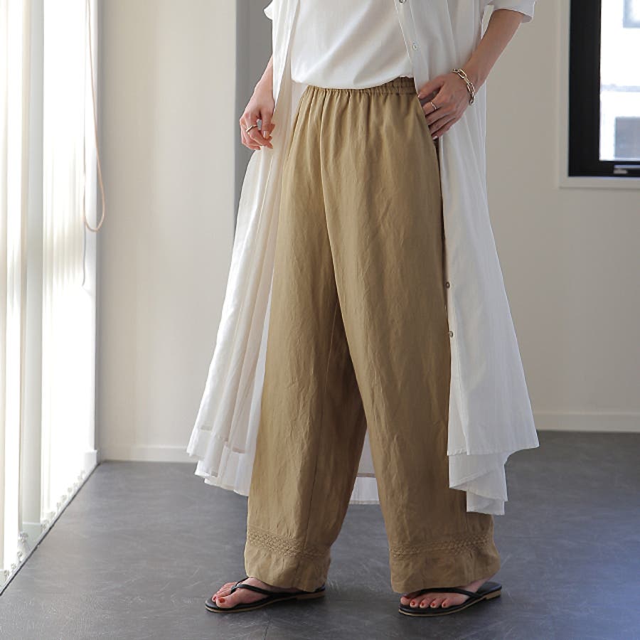 ワイドパンツ レディース パンツ リネン レーヨン 刺繍 レース ゆったり ナ