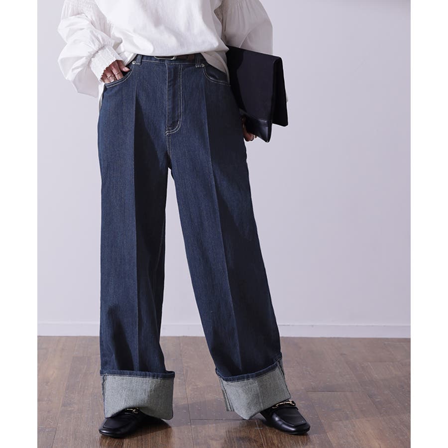 ワイドながらセンタープレスで美脚を作り出すデニムパンツです。