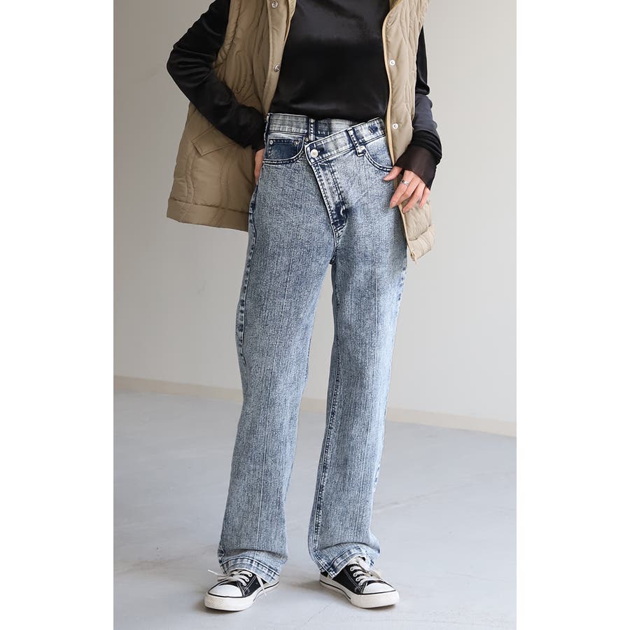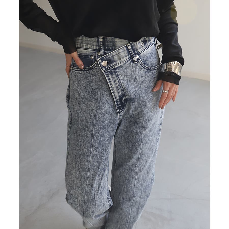 ありそうでなかったクロスウエストデザインのデニムパンツです。