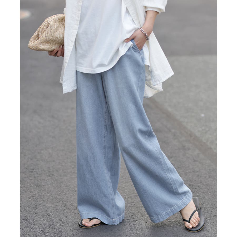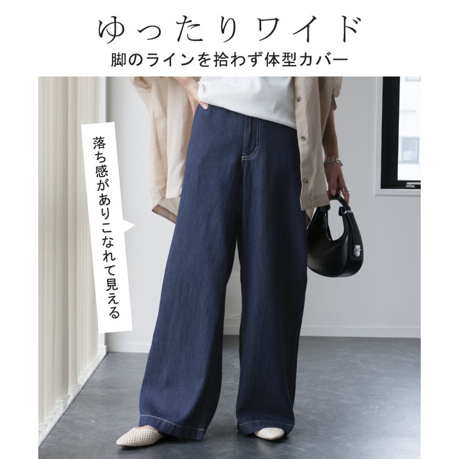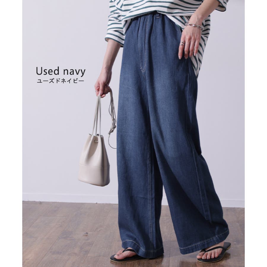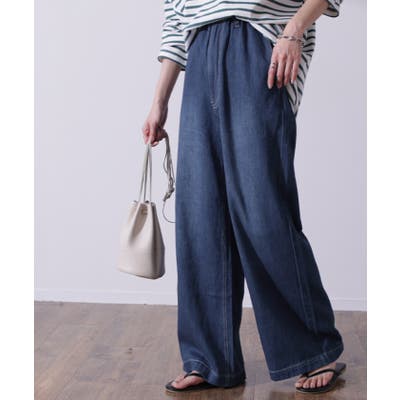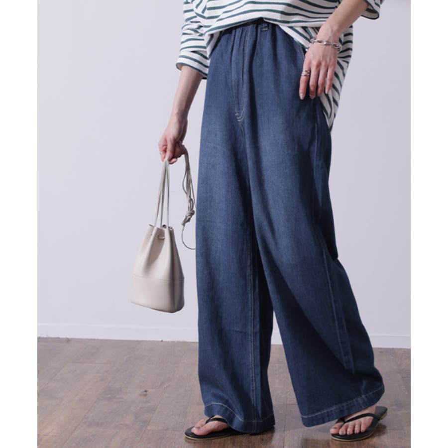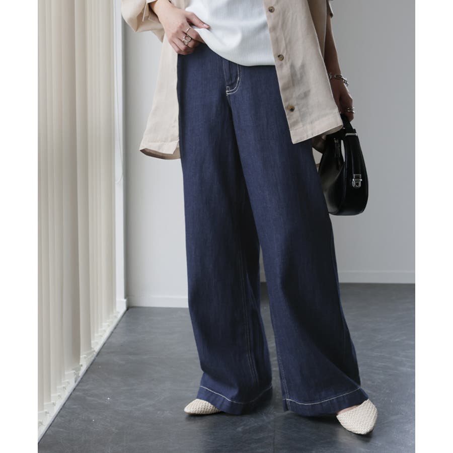 麻混素材のゆったりカジュアルなワイドデニムパンツです。