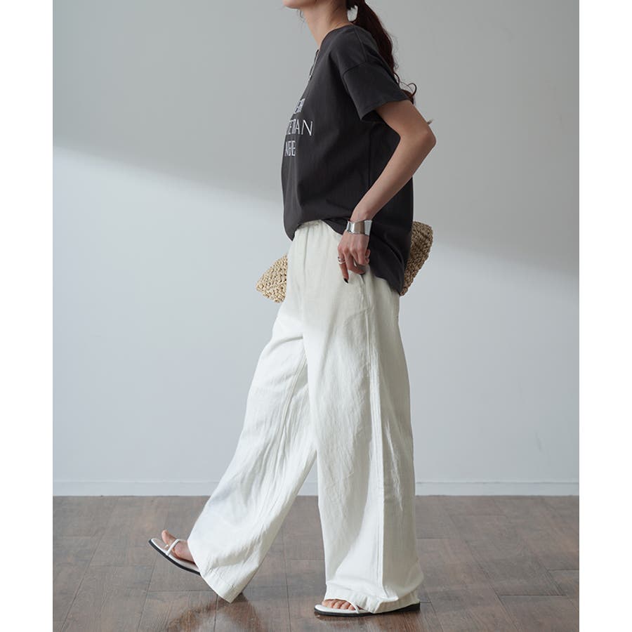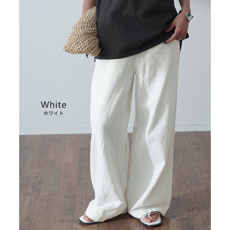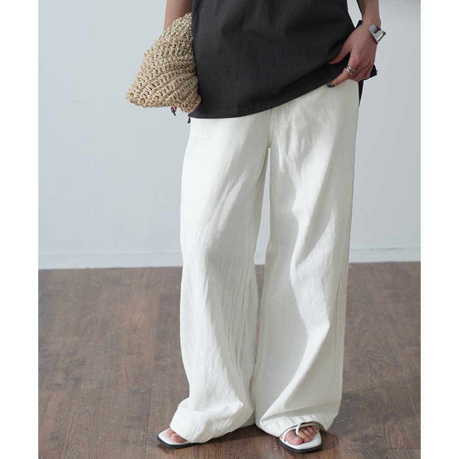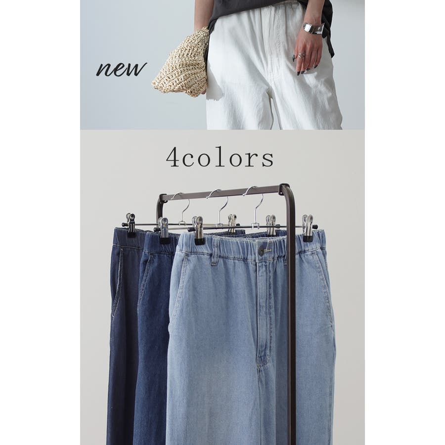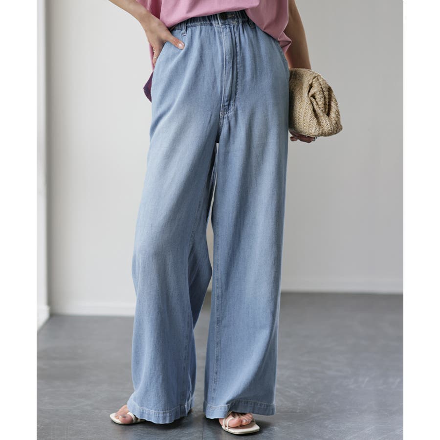 麻混素材のゆったりカジュアルなワイドデニムパンツです。