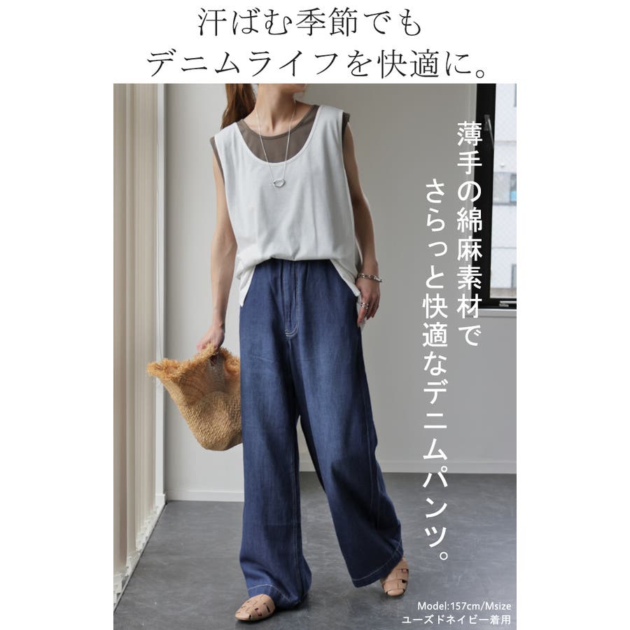 デニム レディース パンツ ワイドパンツ デニムパンツ 綿 麻 ジーンズ ボト