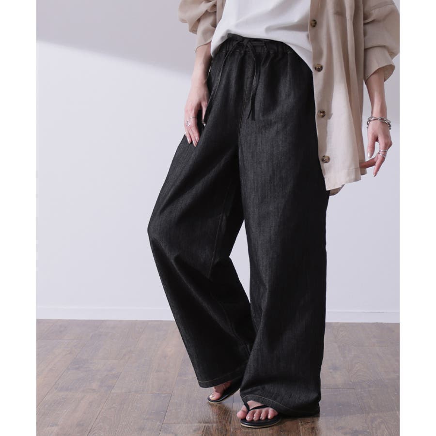 軽い着心地のライトオンスデニムのワイドパンツです。