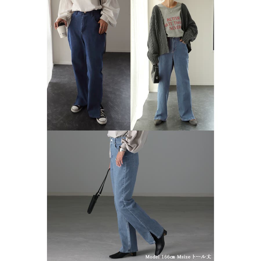 ストレッチも効いていて、デニムとしては少し薄めな生地感だけど、履きやすくていいです。サイドのスリットもオシャレに見えるし、足のラインを拾わずいい感じ。