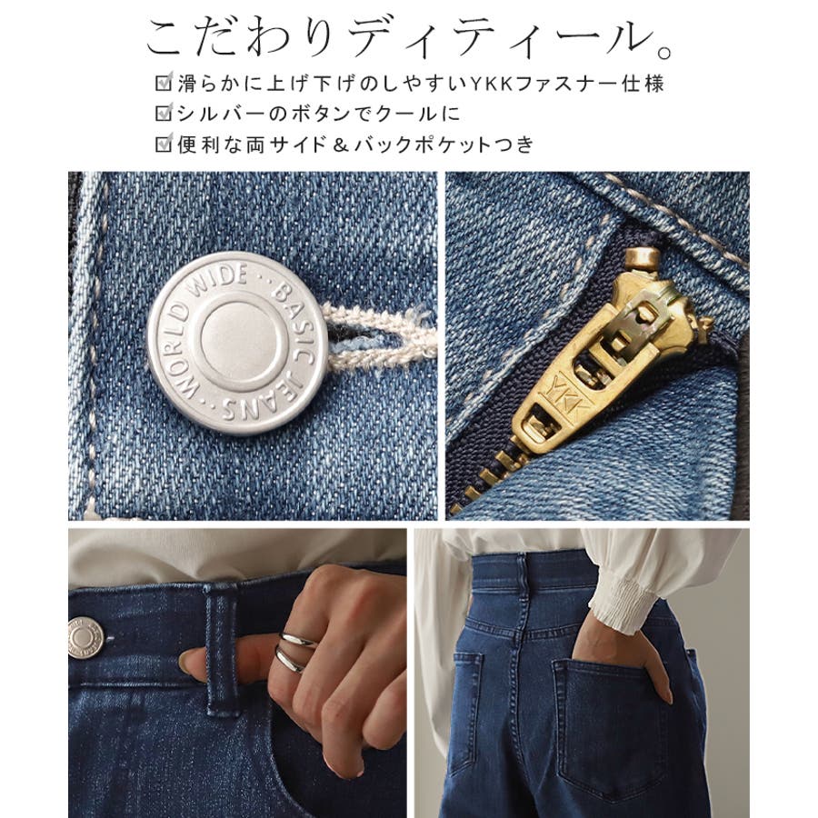 どんなトップスとも合わせやすくカジュアルにもきれいめにも幅広いスタイリングに活躍します。