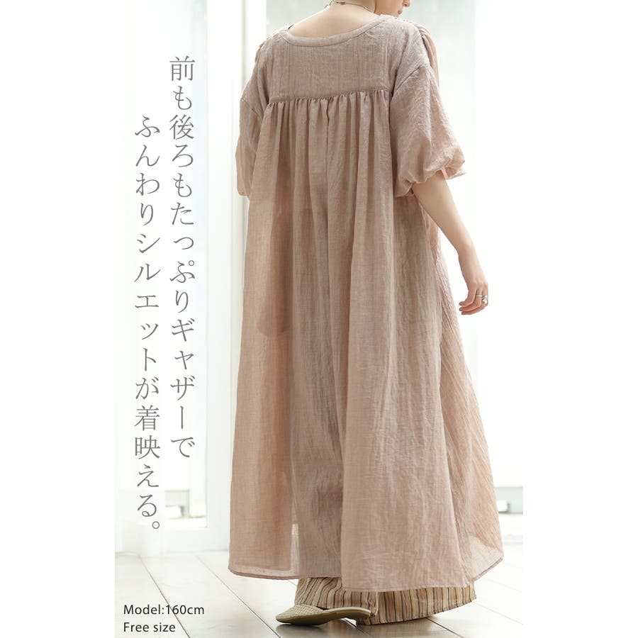 ワンピース レディース ロング コットン 半袖 ナチュラル ぽわん袖 ゆったり