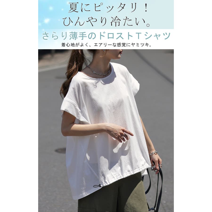 Tシャツ レディース トップス 冷感 フレンチスリーブ 半袖 ドロスト 綿 二