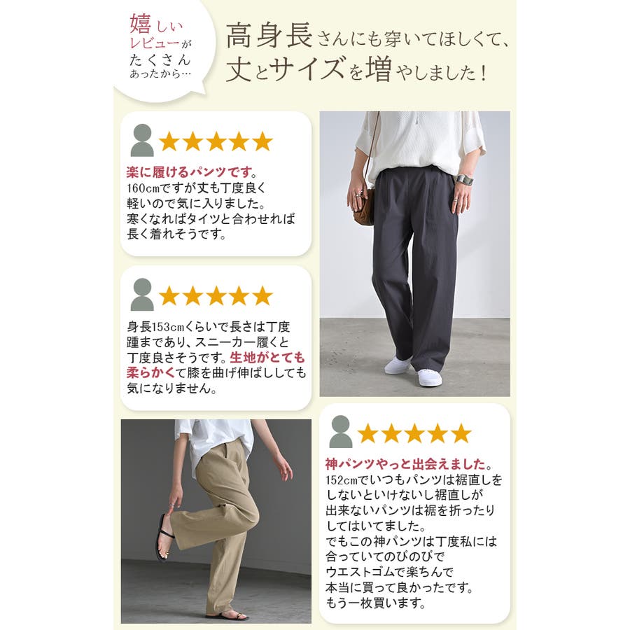 ロングパンツ ストレートパンツ ライン タック ダブルタック ツータック スラックスパンツ イージー イージー素材 楽 リラックスパンツ リラックスボトム 短め 短い 小さいサイズ 小さめ 小さ目 低身長用 伸縮性 伸縮 通勤 オフィス着 オフィスカジュアル シワ シワになりにくい しわ しわになりにくい ロングシーズン アイロンレス キレイめ きれいめ 高見え 薄手 薄目 薄め 薄い プラスサイズ ビッグ ハイウエスト ハイウェスト ストレスフリー ハイウエストパンツ ハイウェストパンツ ロング丈 長い 長め ズボン ずぼん 長ズボン 長ずぼん ゴムウエスト ゴムウェスト ウエストゴム ウェストゴム ゴム ウエスト ウェスト ポケット 無地 さらさら サラサラ ゆったり ゆる ゆったりサイズ ゆるカジ ゆるい ゆるファッション ラクチン らくちん 楽ちん 楽 動きやすい 脚長 脚長効果 美脚 美尻 お尻 ランチ デート お出かけ 旅行 飛行機 ミドリ カーキ オリーブ 緑 緑色 ベージュ ライトベージュ ブラック 黒 黒色 アイボリー オフ オフホワイト ロハスアイボリー 白 白色 レディースファッション 旬 トレンド レイヤード 重ね着 重ね レイヤードコーデ ビック big ビックシルエット ビッグシルエット ビックサイズ ビッグサイズ オーバーサイズ オーバー 着痩せ 大き目 大きい 大きめ 大きいサイズ フリーサイズ フリー S M L LL 2L XL 3L XXL LLL カジュアル ナチュラル ベーシック オフィス オフィスカジュアル テレワーク リモートワーク リモート オンライン飲み会 おうち時間 お家時間 着回し 母の日 プレゼント ギフト 贈り物 クリスマス シンプル 大人 大人カジュアル オトナ 女性 綺麗 綺麗目 きれい キレイ キレイメ 上質 上品 20代 30代 40代 50代 おしゃれ お洒落 オシャレ 可愛い かわいい カワイイ カッコいい 格好良い カッコイイ 春 夏 秋 冬 春夏 秋冬 HUG.U HUGU ハグユー はぐゆー