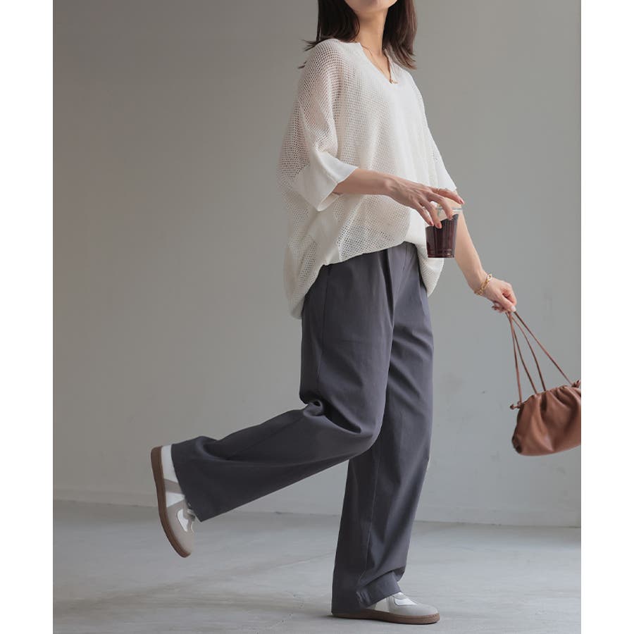 ワイドすぎないストレートなシルエットで脚をまっすぐ見せ美脚効果も◎。
