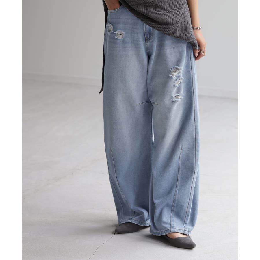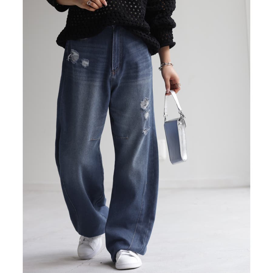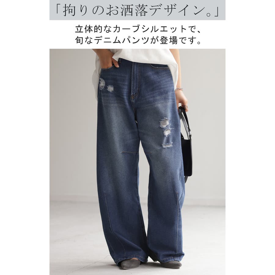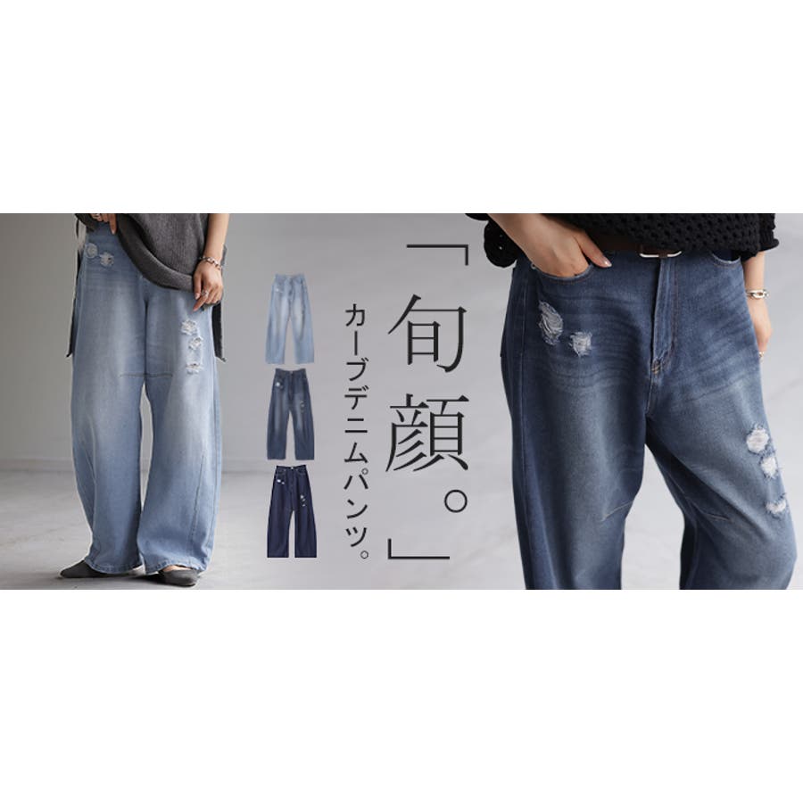 存在感抜群のカーブラインがこなれ感ある印象のデニムパンツです。