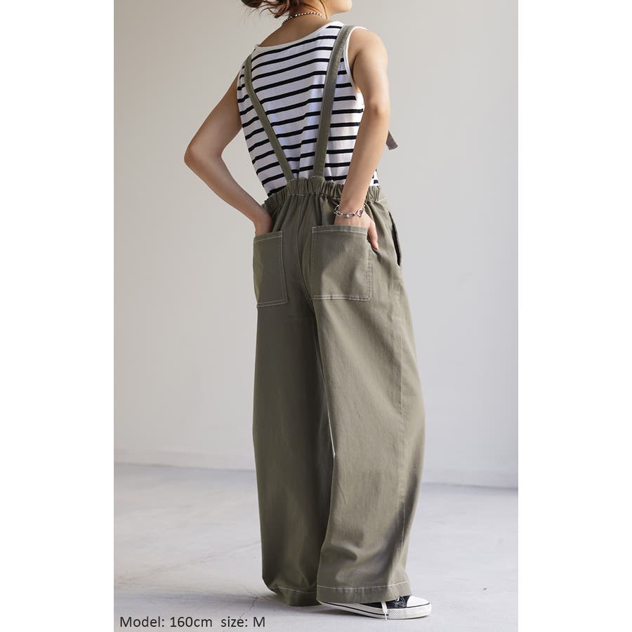 ゆったりとしたシルエットがトレンド感を演出するサロペット風ワイドパンツです。