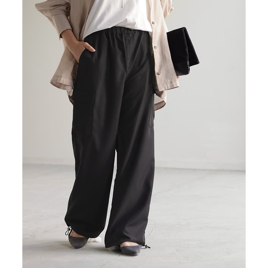 ウエストゴム仕様のストレスフリーな穿き心地と裾ドロストでシルエットアレンジが可能。