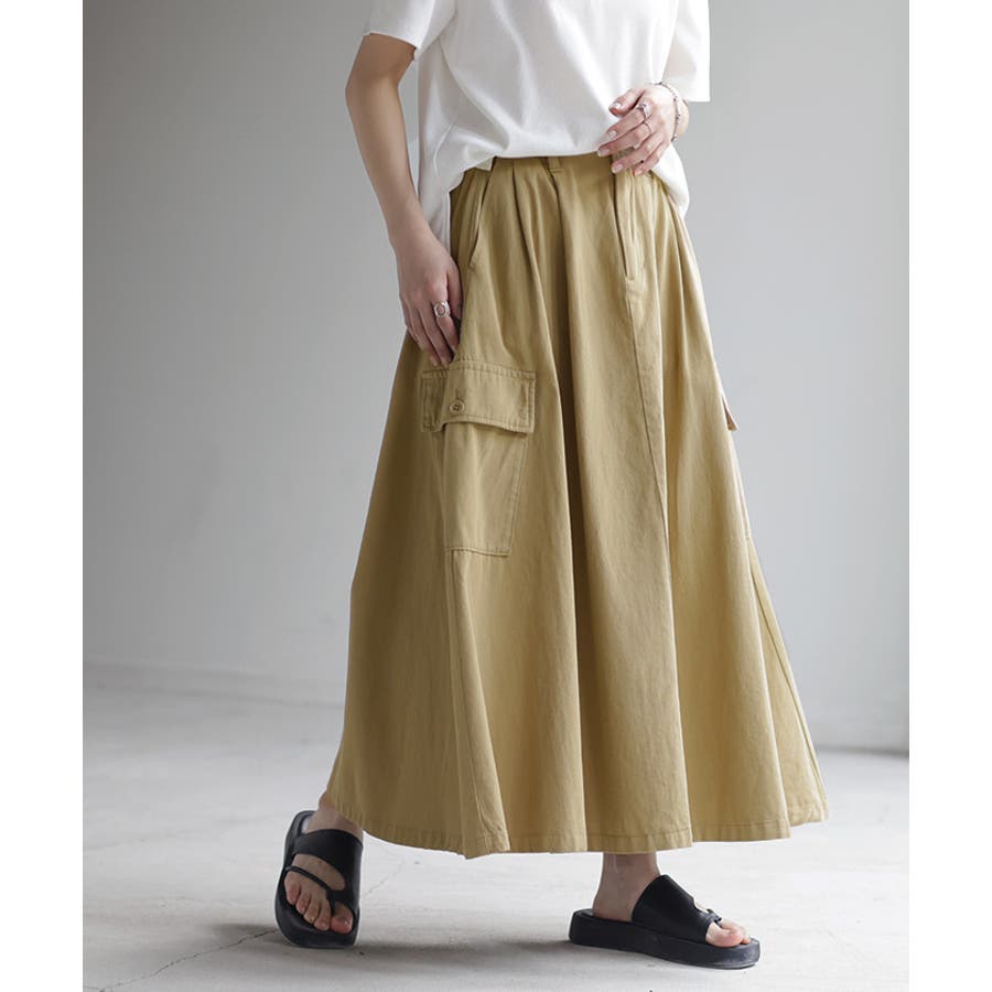 ワークディテールを活かしながらも、レディライクに着こなせるカーゴスカートです。