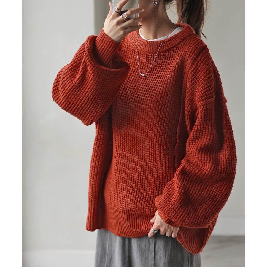 保温性が高い立体的なワッフル編みが、こなれ魅えするニットです。