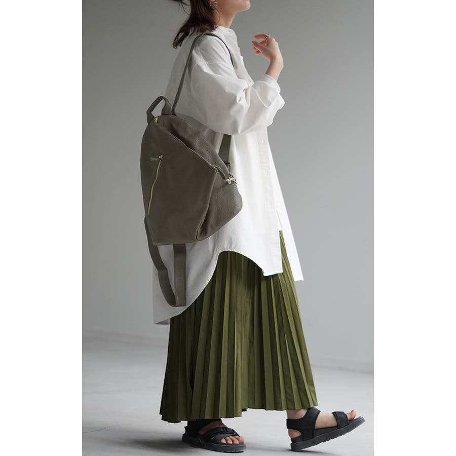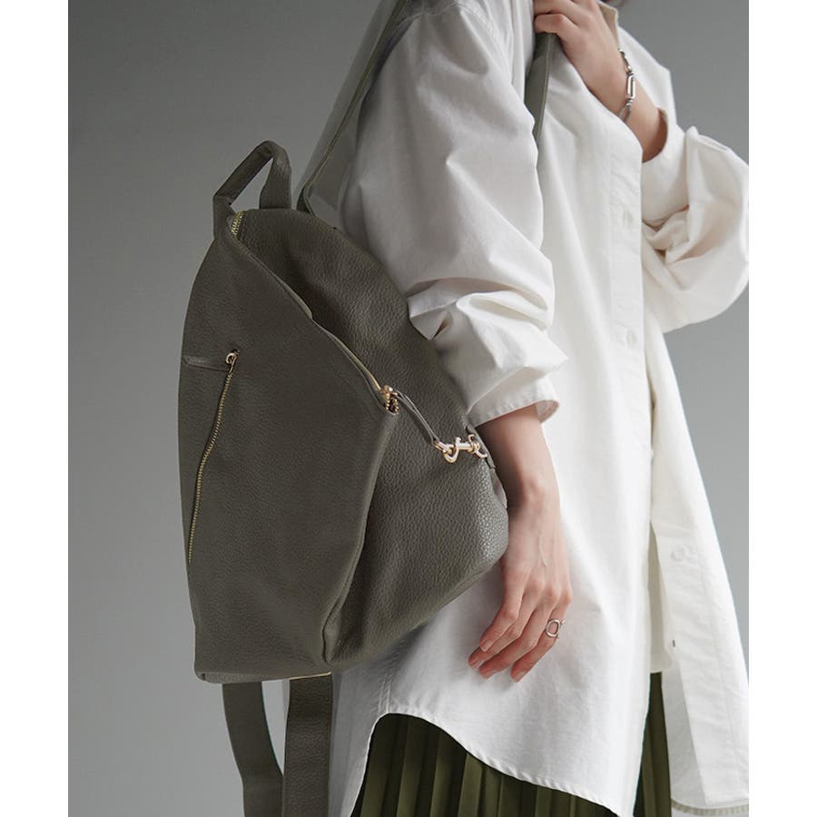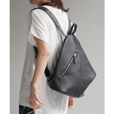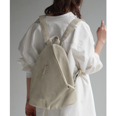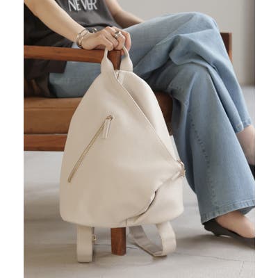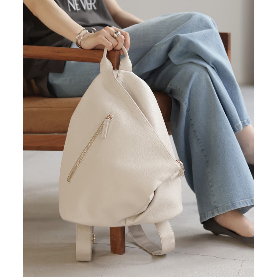 リュックなのにカジュアルすぎない、三角シルエットのモードなデザイン。