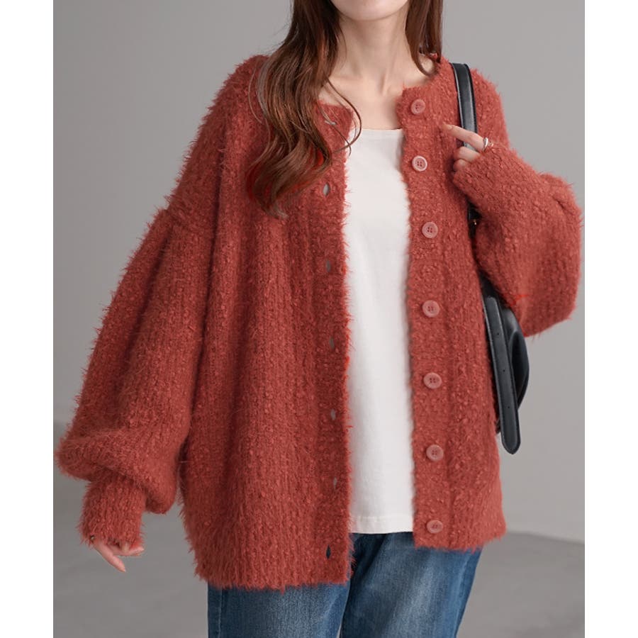 ふわふわのシャギーニットがトレンドライクなVネックカーディガンです。