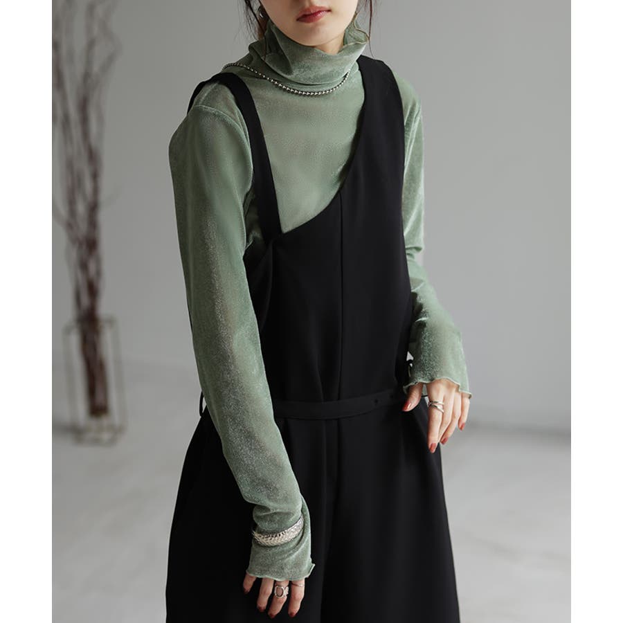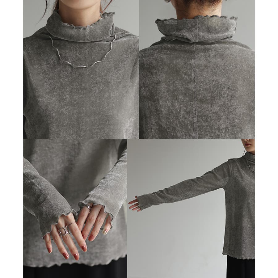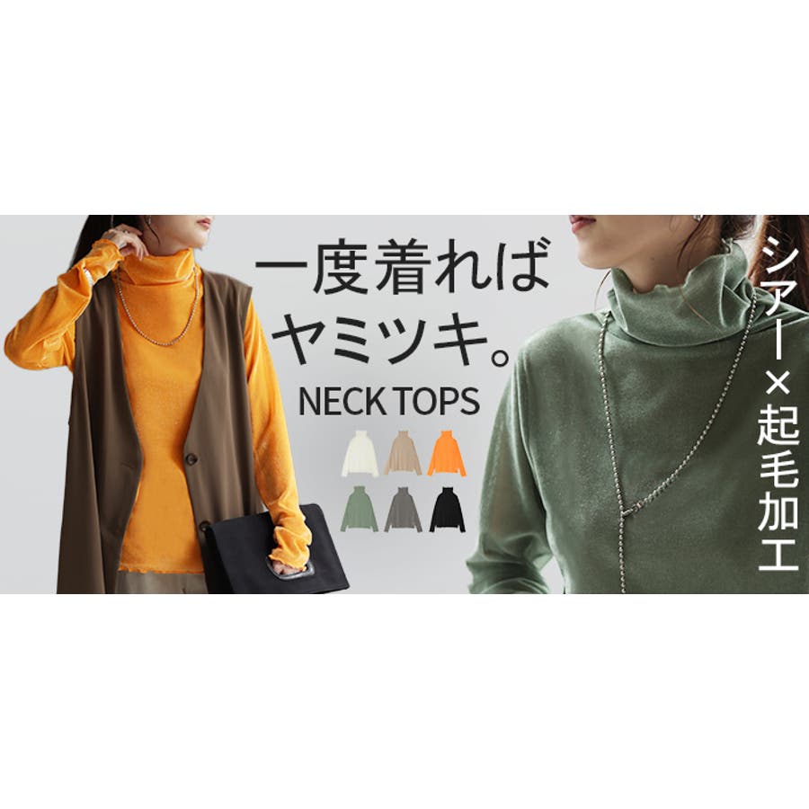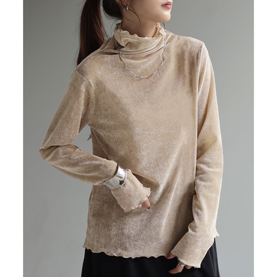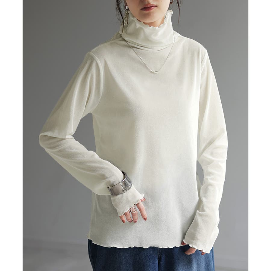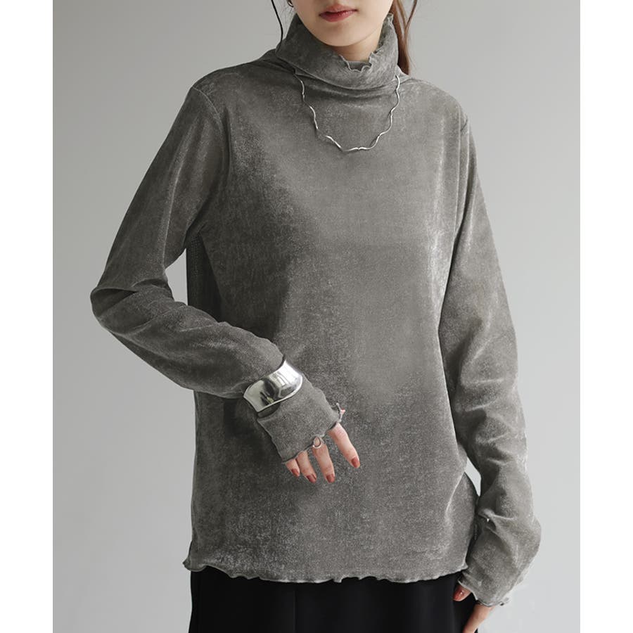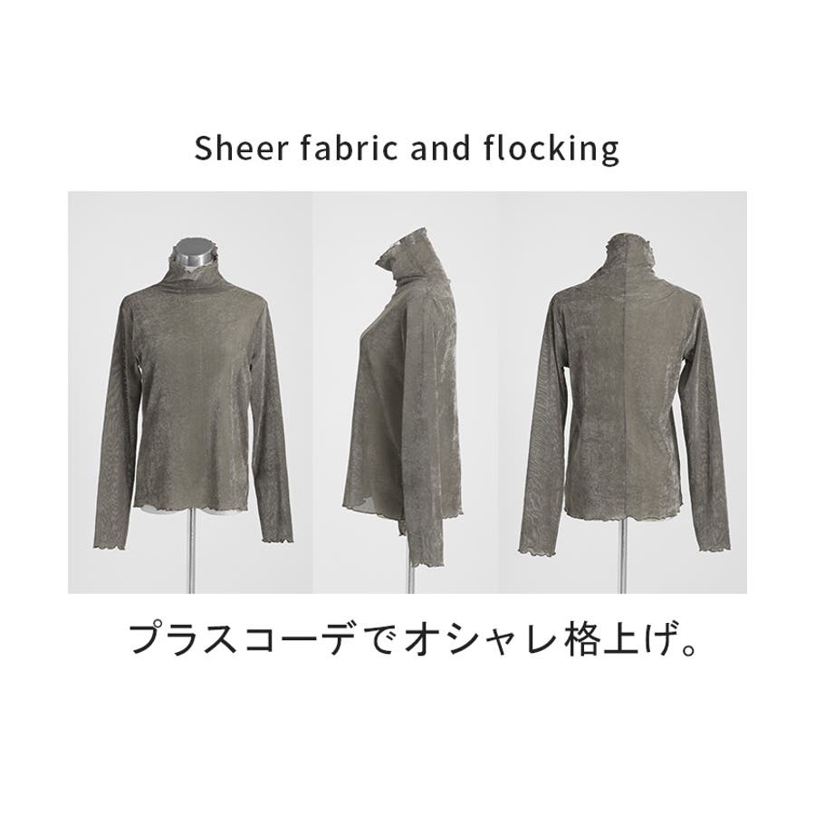 甘くなり過ぎないシアー素材を使用したハイネックプルオーバーです。