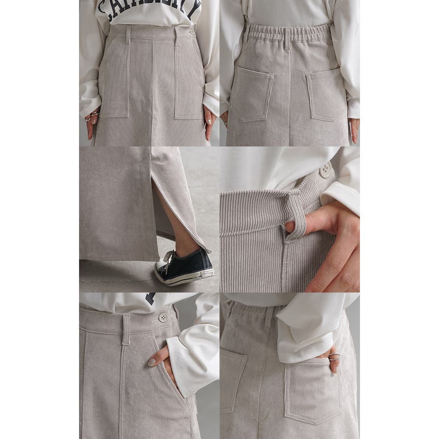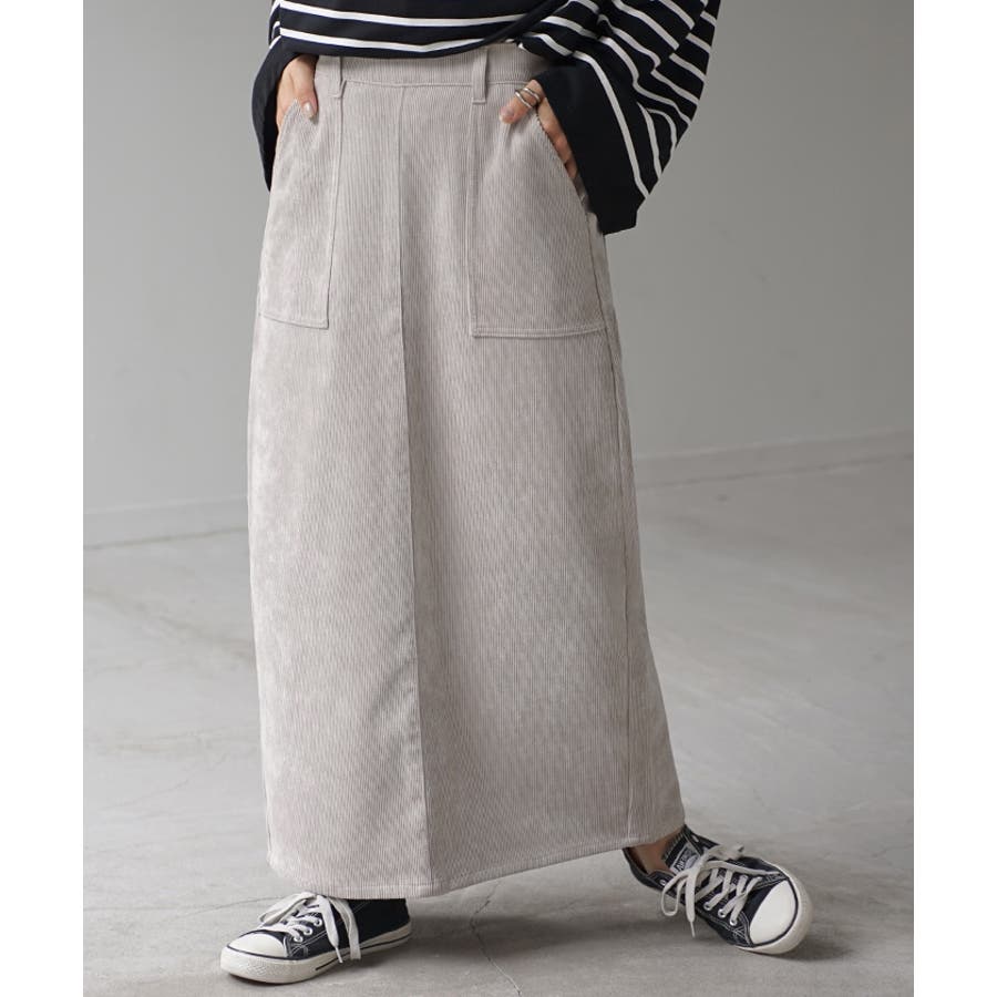 抜け感のある着こなしにキマるコーデュロイスカートです。