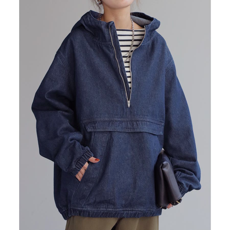 サスティナブルなリサイクルデニムを使用したアノラックパーカーです。