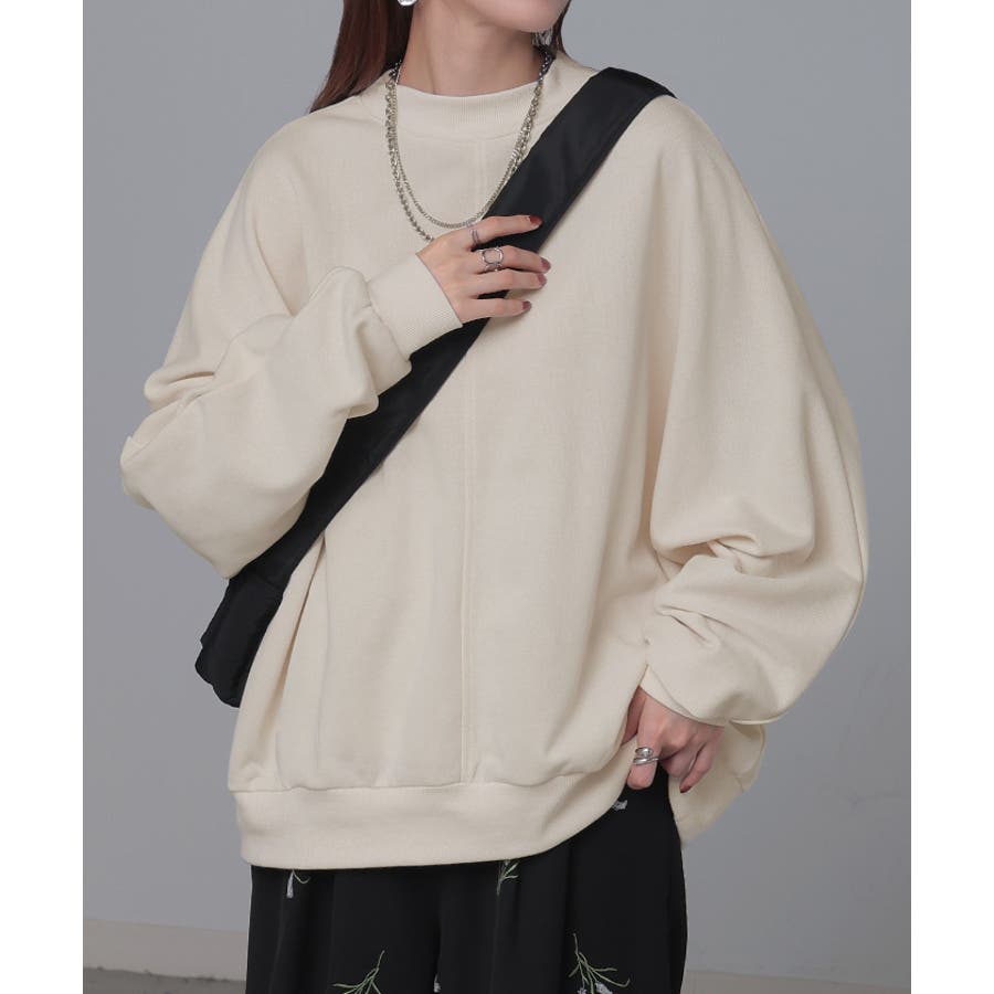 ゆったりとしたドルマンスリーブがラフな雰囲気を演出するスウェットです。