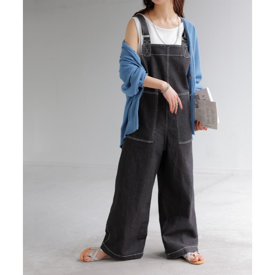 トレンドライクなルーズさがこなれ感ある配色ステッチサロペットです。