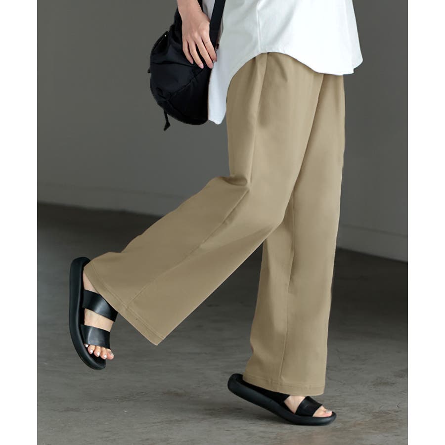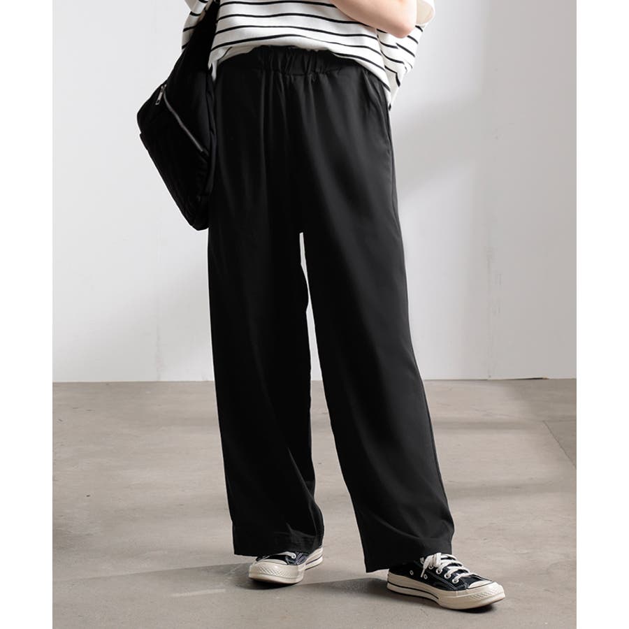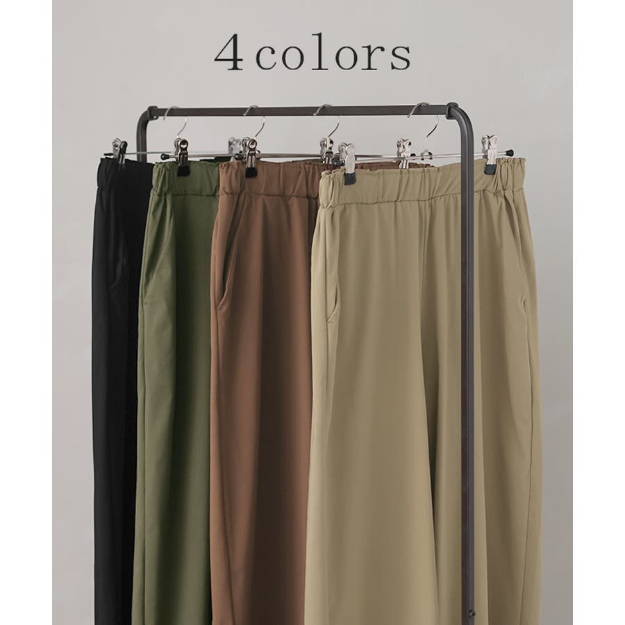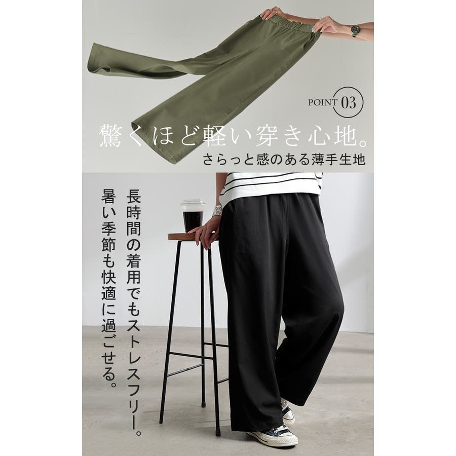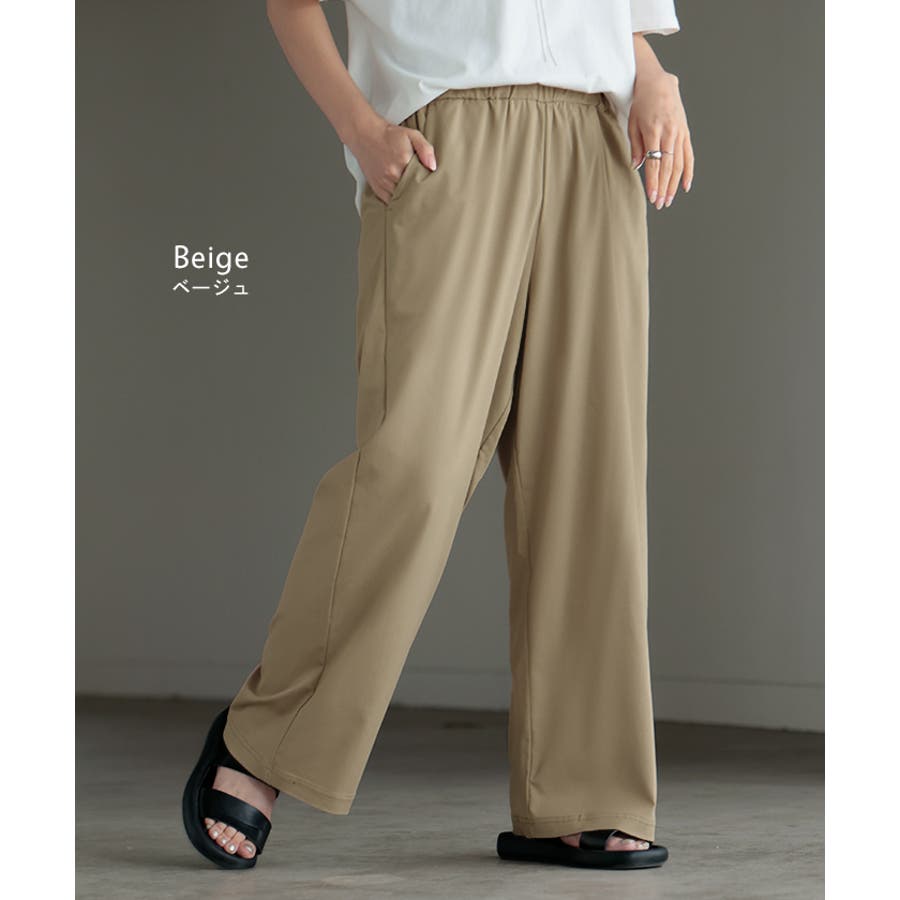 接触冷感加工で肌に触れるとひんやりと快適な着心地のワイドパンツです。