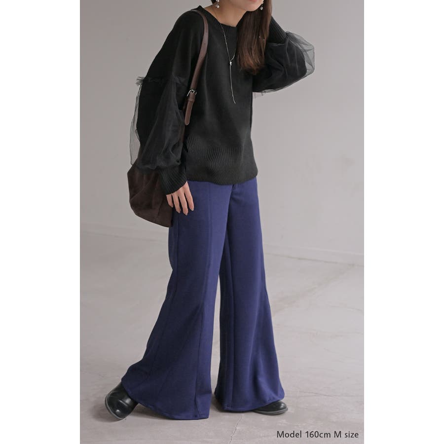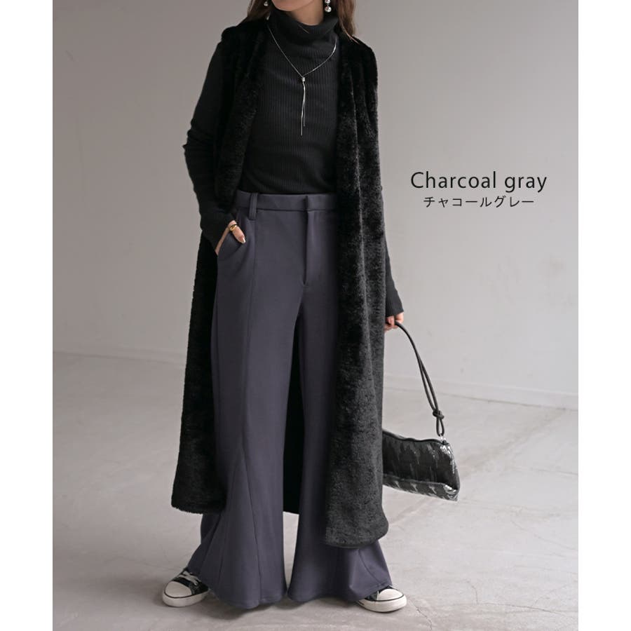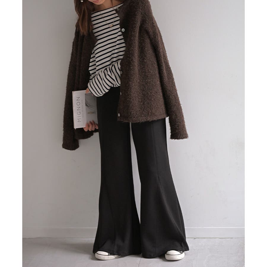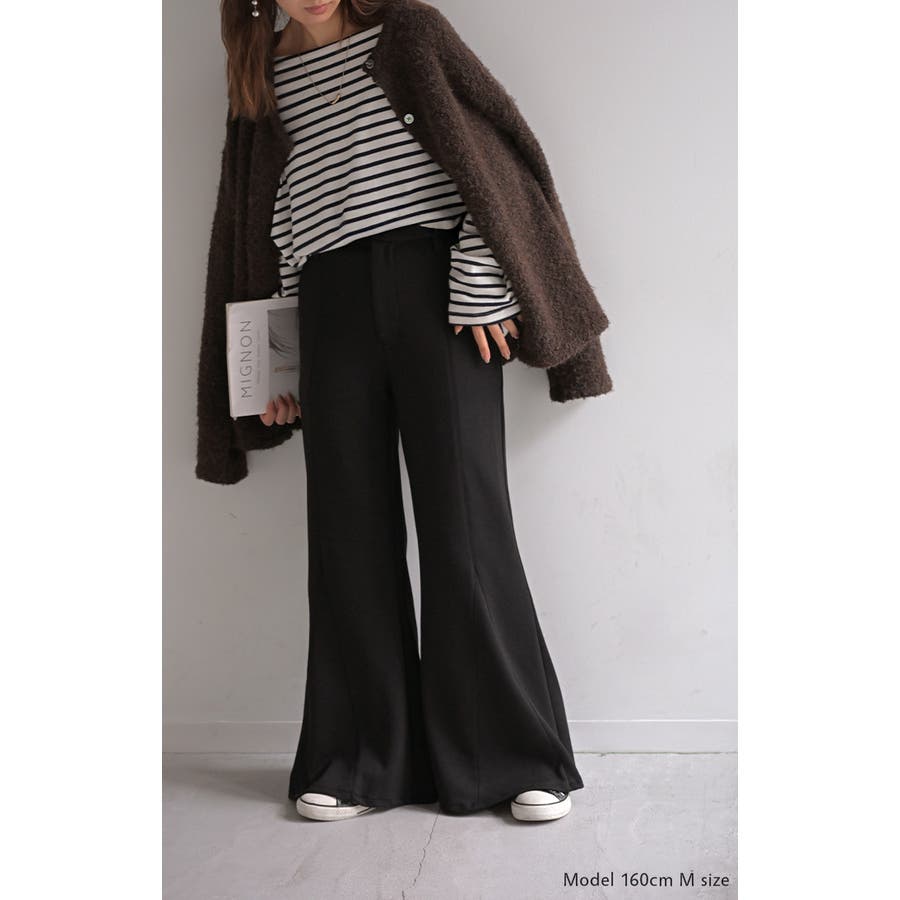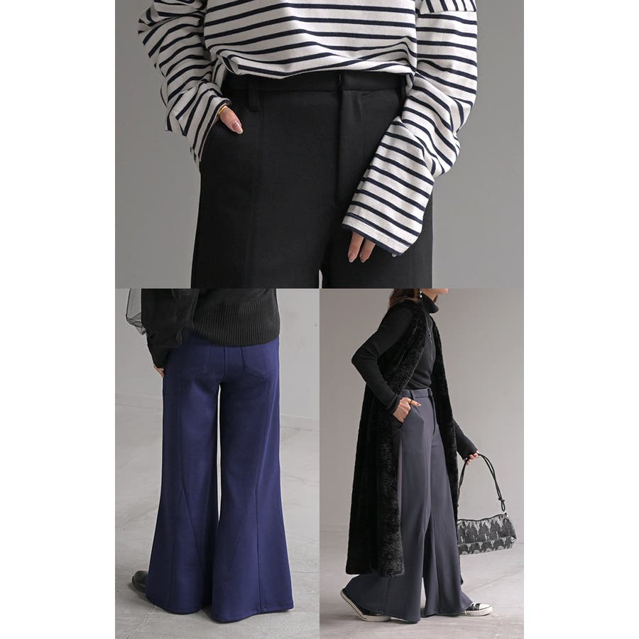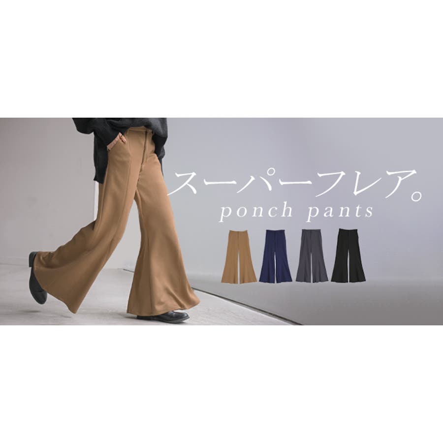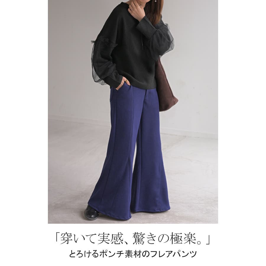 とろみ感のある柔らかなポンチ素材が心地良いフレアパンツです。